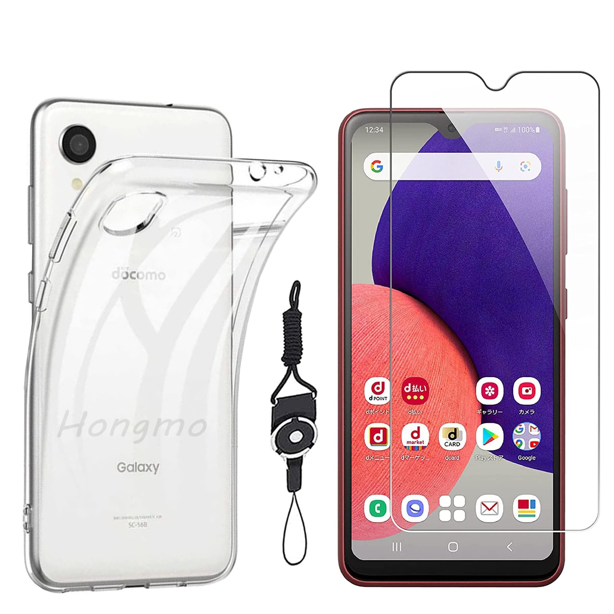 【2022最新】【1枚セットガラスフィルム+ケース TPU+携帯ストラップ 付属】For Galaxy A22 5G SC-56B 用の ガラスフィルム SC-56B 用の フィルム For Galaxy A22 5G 液晶保護フィルム 硬度9H 耐衝撃 防指紋+For Galaxy A22 5G SC-56B ケース TPU SC-56B 対応 透明保護ソフト シリコンケース 擦り傷防 薄型 軽量 専用ケース | わくわくSHOP