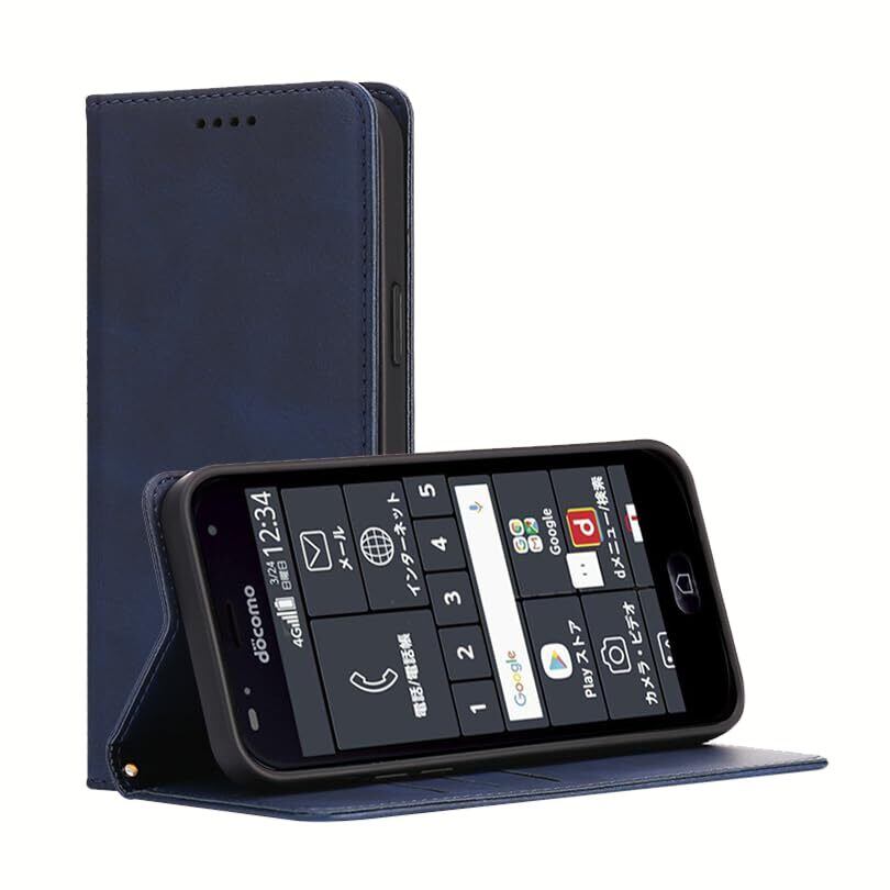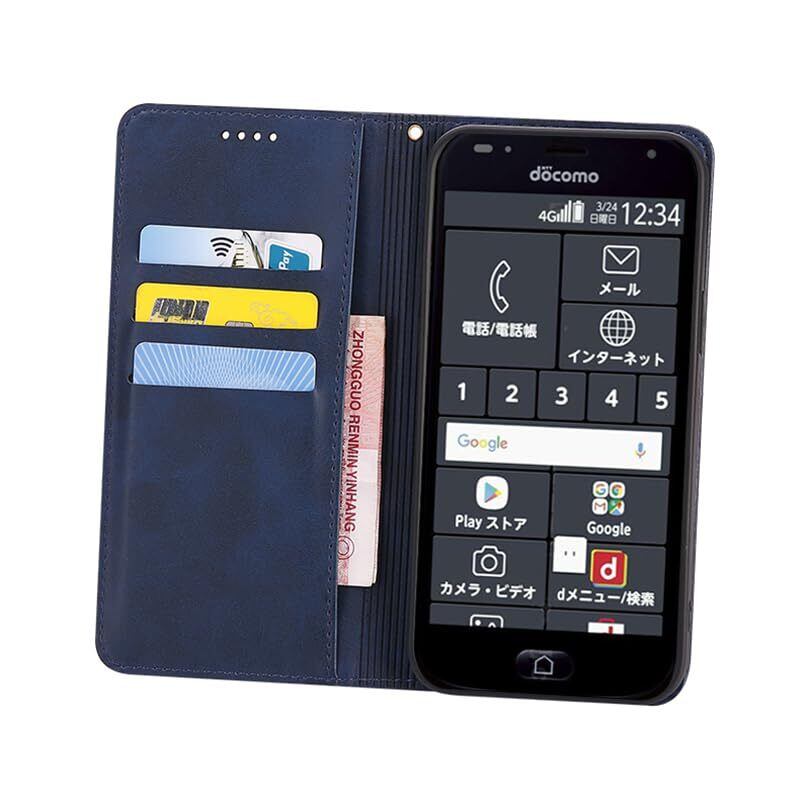 【在庫処分】らくらくスマートフォン me F-01L / F-42A ケース 手帳型 カバー PUレザー カード収納 財布型 耐衝撃 ケース マグネット スタンド機能付き 5色 (深い青) | わくわくSHOP