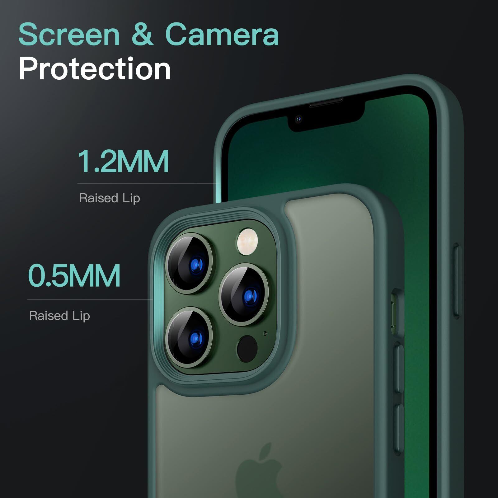 JEDirect マットケース iPhone 13 Pro 6.1インチ 耐衝撃性ミリタリーグレードの落下防止 つや消しの半透明の背面電話カバー 指紋防止 (濃い緑色)