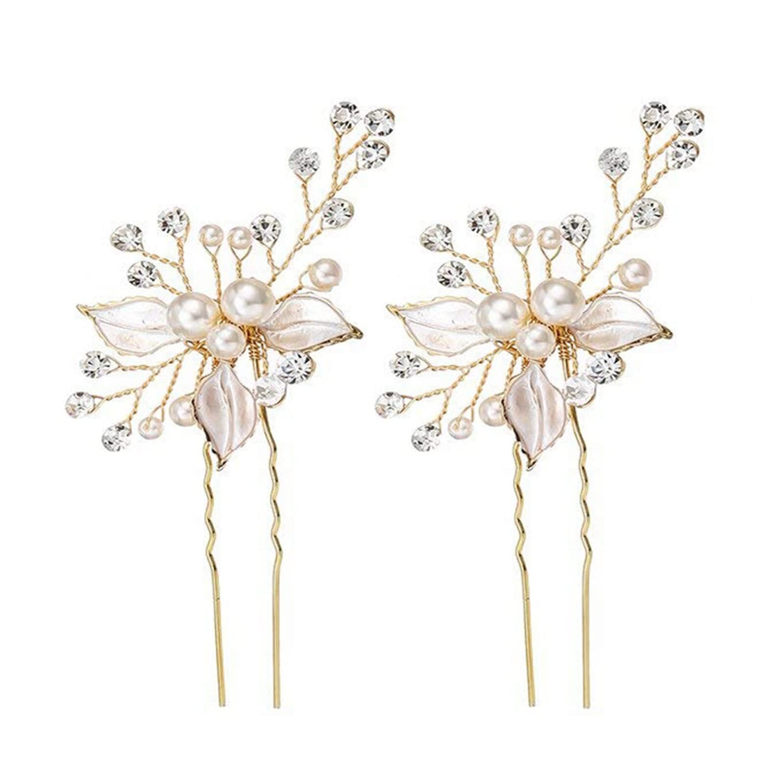 DFsucces ゴールドヘアピン 三つ葉 ヘアピン 結婚式 二次会 発表会 卒業会 パール 髪飾り (ゴールド-2本セット)