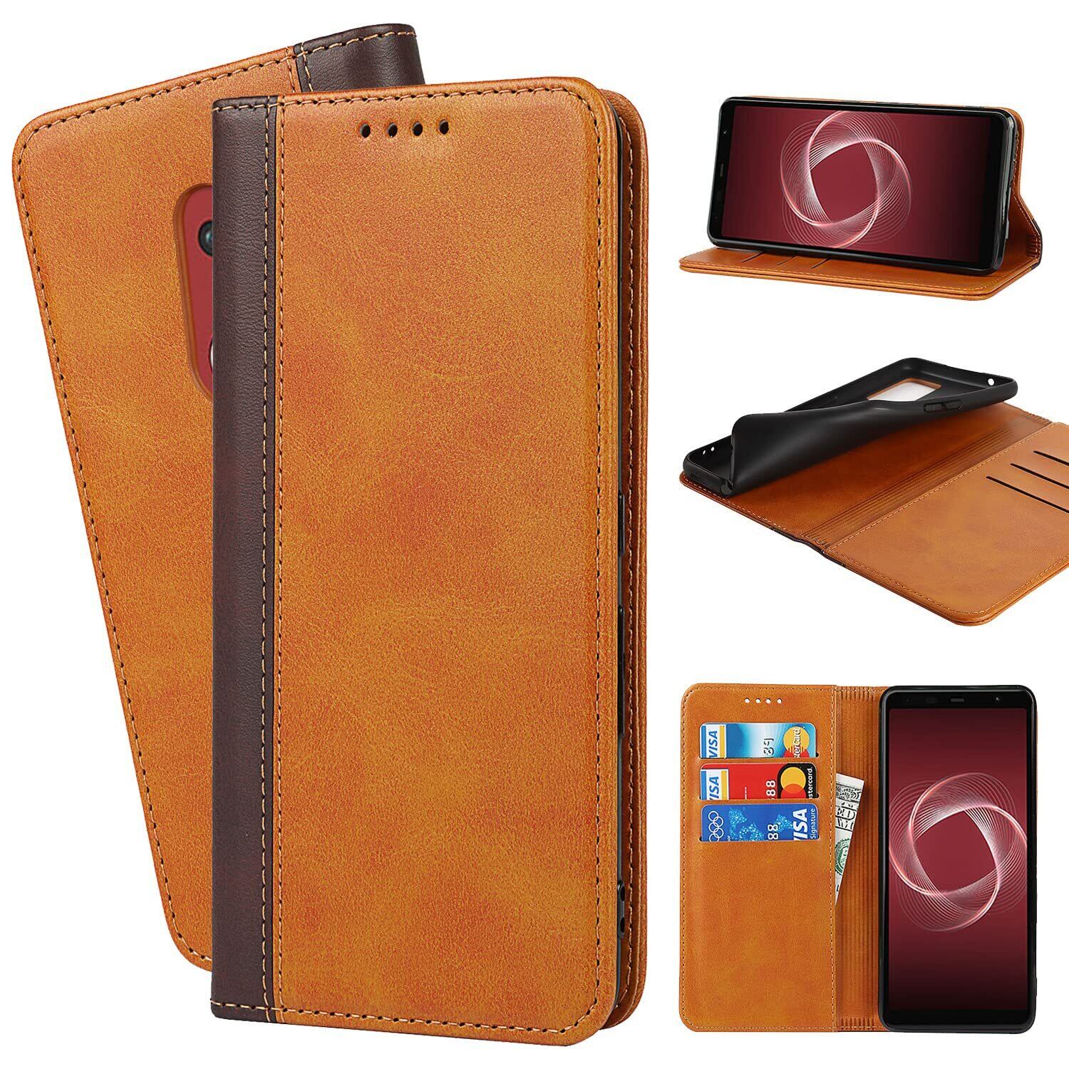Havaya Arrows Be4 Plus ケース docomo arrows f-41b ケース Arrows BZ02 ケース be4+ Fujitsu 富士通 手帳型 docomo 耐衝撃 カバー マグネット式 カード収納 スタンド機能 レザー-イエロー+ブラウン