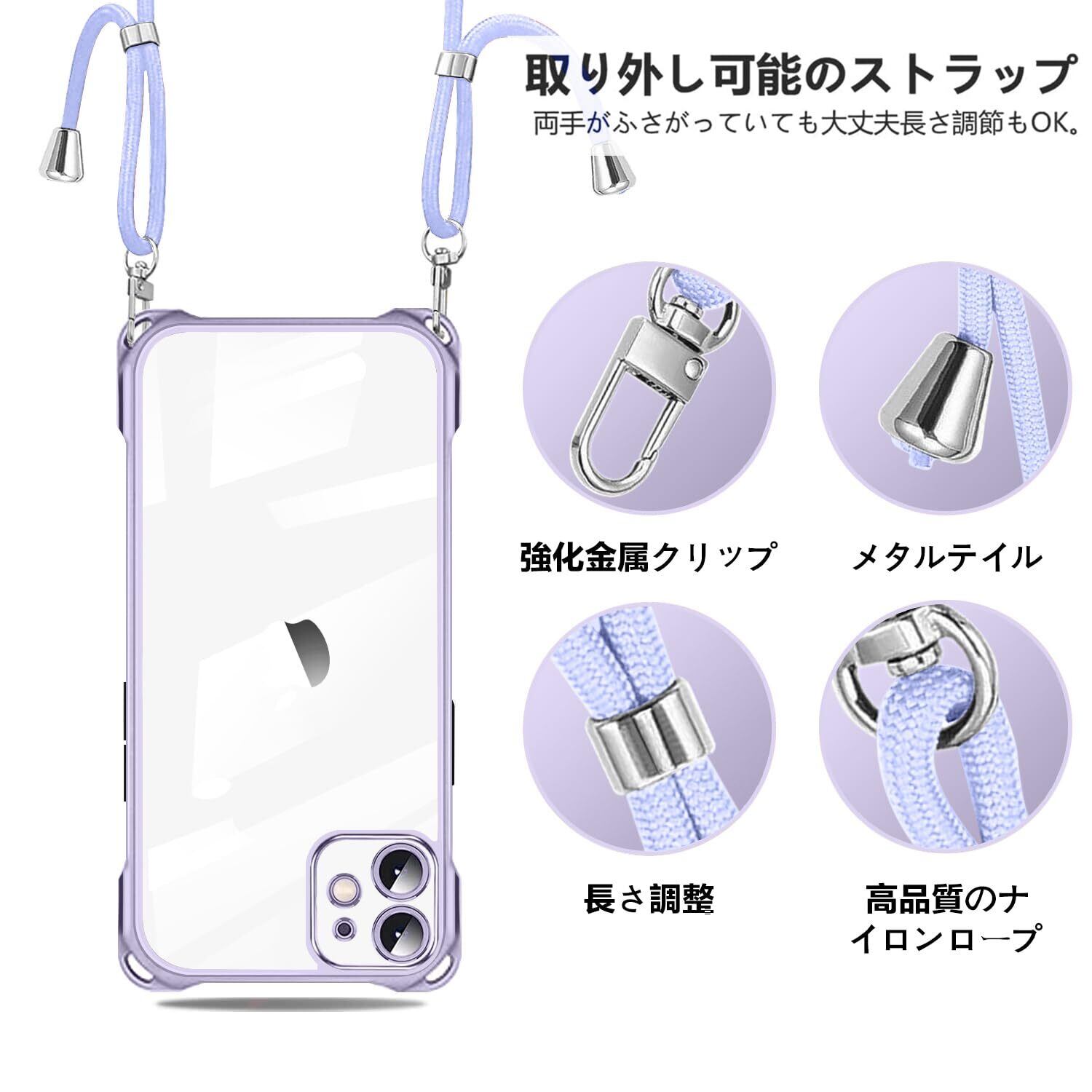 【新春セール】iPhone 12 mini 用 ケース クリア ショルダー iphone12mini 用 スマホケース アイフォン12ミニ カバー 肩掛け 斜めかけ 縄掛けケース 透明 TPU 薄型 軽量 耐衝撃 紐付き 斜めがけ 織りストラップ付き ネックストラップ ショルダー ケース 縦/横 2WAY 長さ調整可能 取り外し可能 落下防止 紛失防止 ワイヤレス充電対応 (パープル) | わくわくSHOP