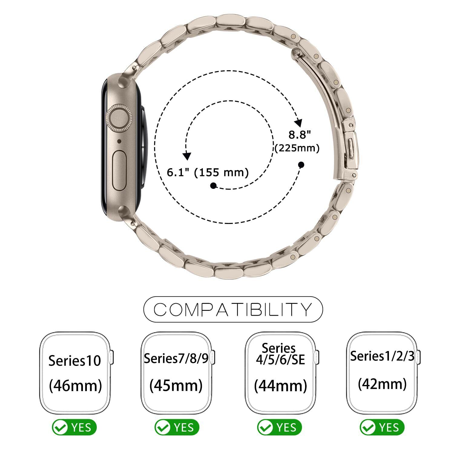 【人気商品】コンパチブル Apple Watch バンド 49mm 46mm 45mm 44mm 42mm プレミアムステンレススチールメタル交換バンド Apple Watch Ultra (49mm) シリーズ10 (46mm) シリーズ 9 / 8 / 7 (45mm) SE シリーズ6 シリーズ5 / 4 (44mm) シリーズ3 / 2 / 1 (42mm) 用 (スターライト) | わくわくSHOP