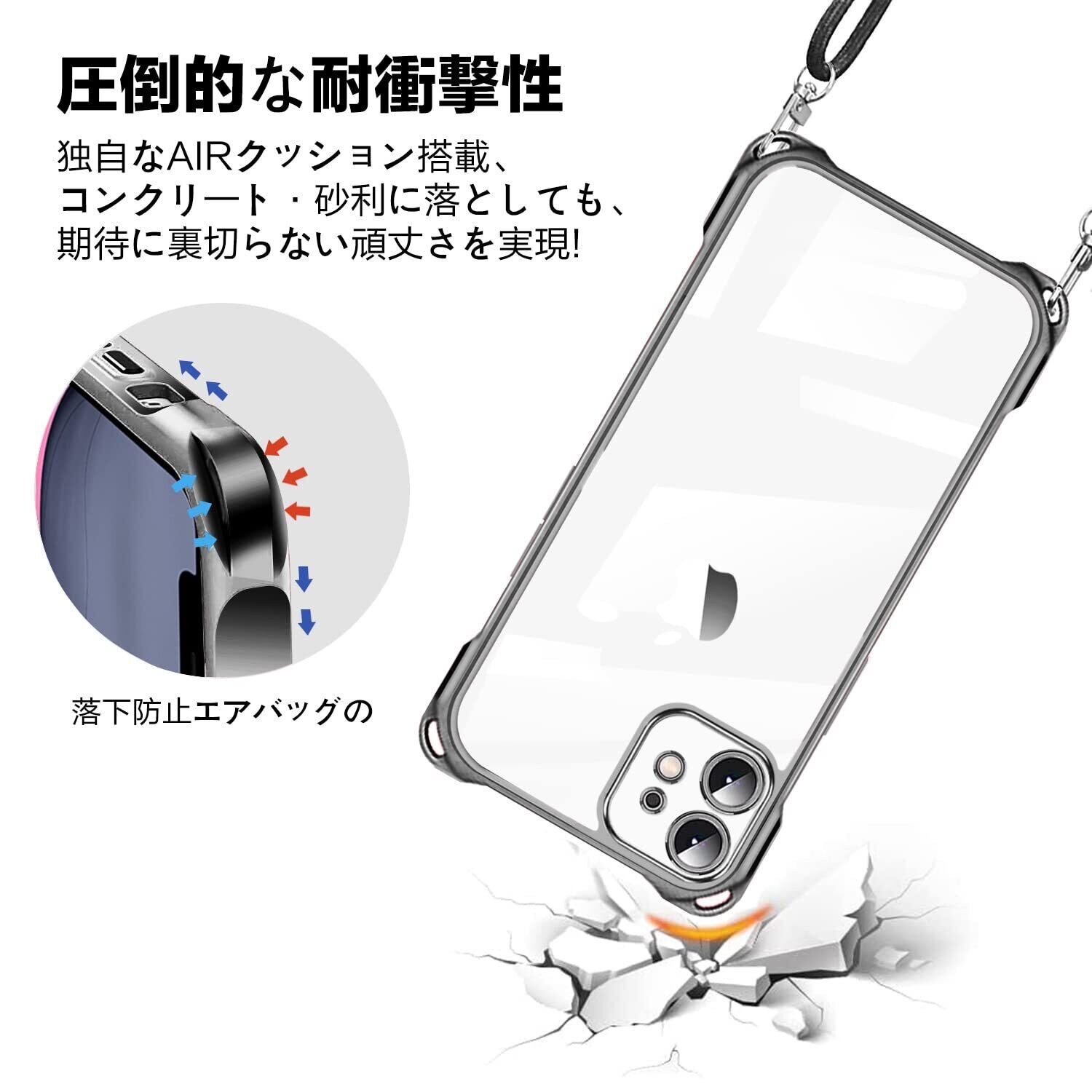 iPhone 12 用 ケース クリア ショルダー iphone12 用 スマホケース アイフォン12 カバー 肩掛け 斜めかけ 縄掛けケース 透明 TPU 薄型 軽量 耐衝撃 紐付き 斜めがけ 織りストラップ付き ネックストラップ ショルダー ケース 縦/横 2WAY 長さ調整可能 取り外し可能 落下防止 紛失防止 ワイヤレス充電対応 (ブラック)