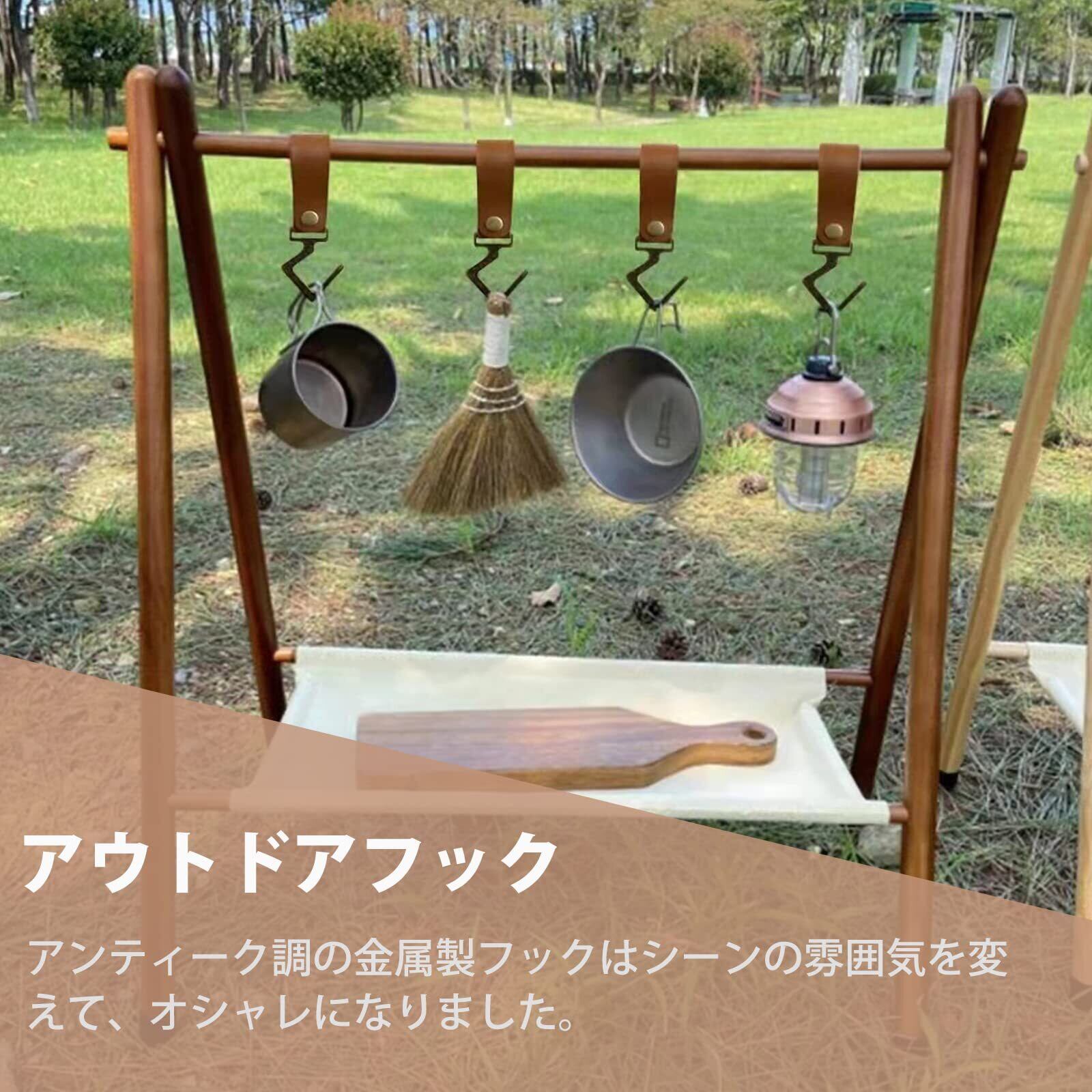 PUレザー製 ランタンフック 金属 フック キャンプ アウトドア ハンガー 吊り下げ S字フック ライト 調理器具 キッチン 野外 収納 整理 テントポールフック ランタンハンガー 多機能 ランタンスタンド 組み立て簡単 ハンギングラック