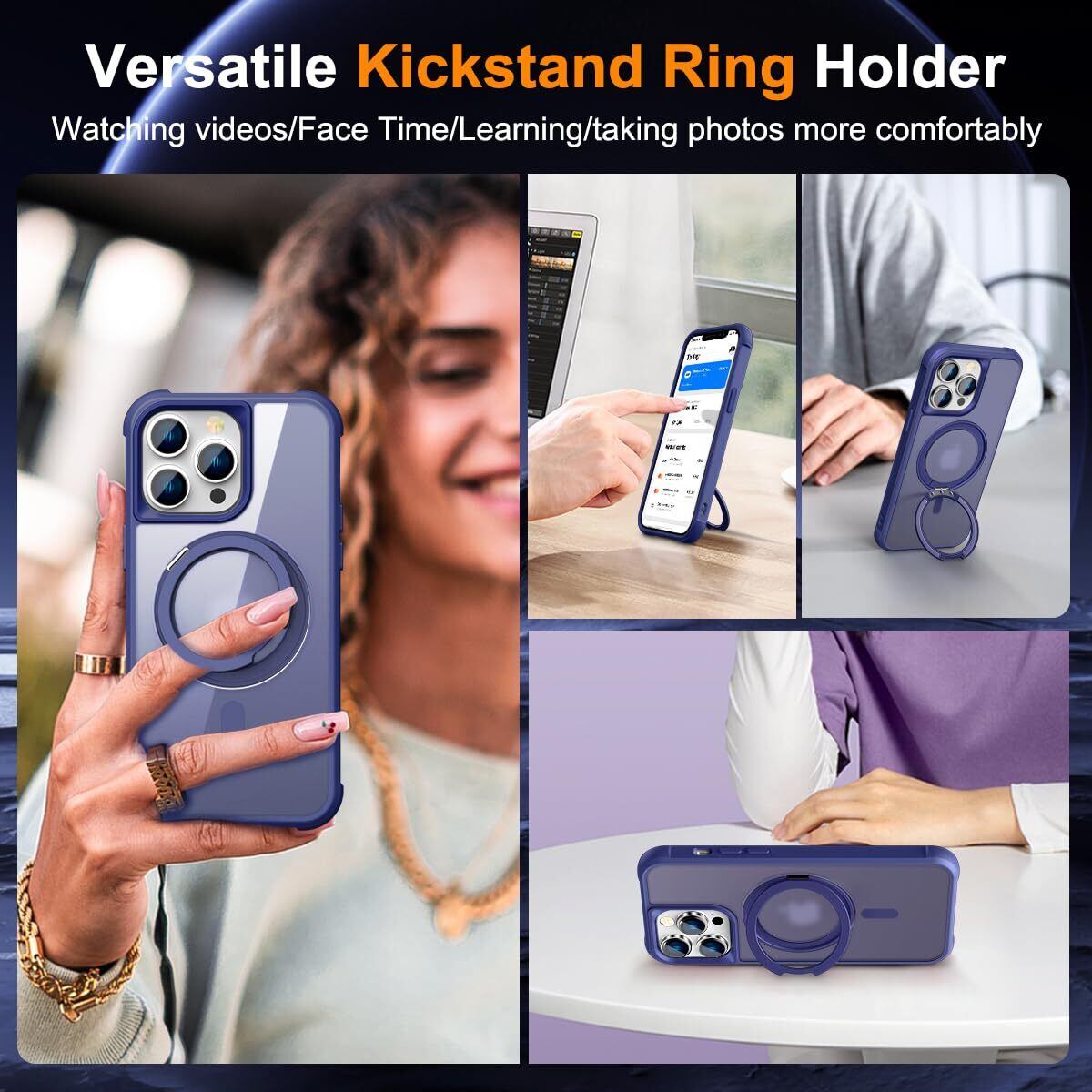 360スタンド iPhone 13 Pro Max/iPhone 12 Pro Max ケース MagSafe対応 マグネット搭載 半透明 アイフォン13プロマックス iPhone 12 pro max スマホカバー 隠しリンク付き 360°回転スタンド ストラップホール付き カメラ保護 カバー 耐衝撃 軽量 薄型 おしゃれ, ブルー