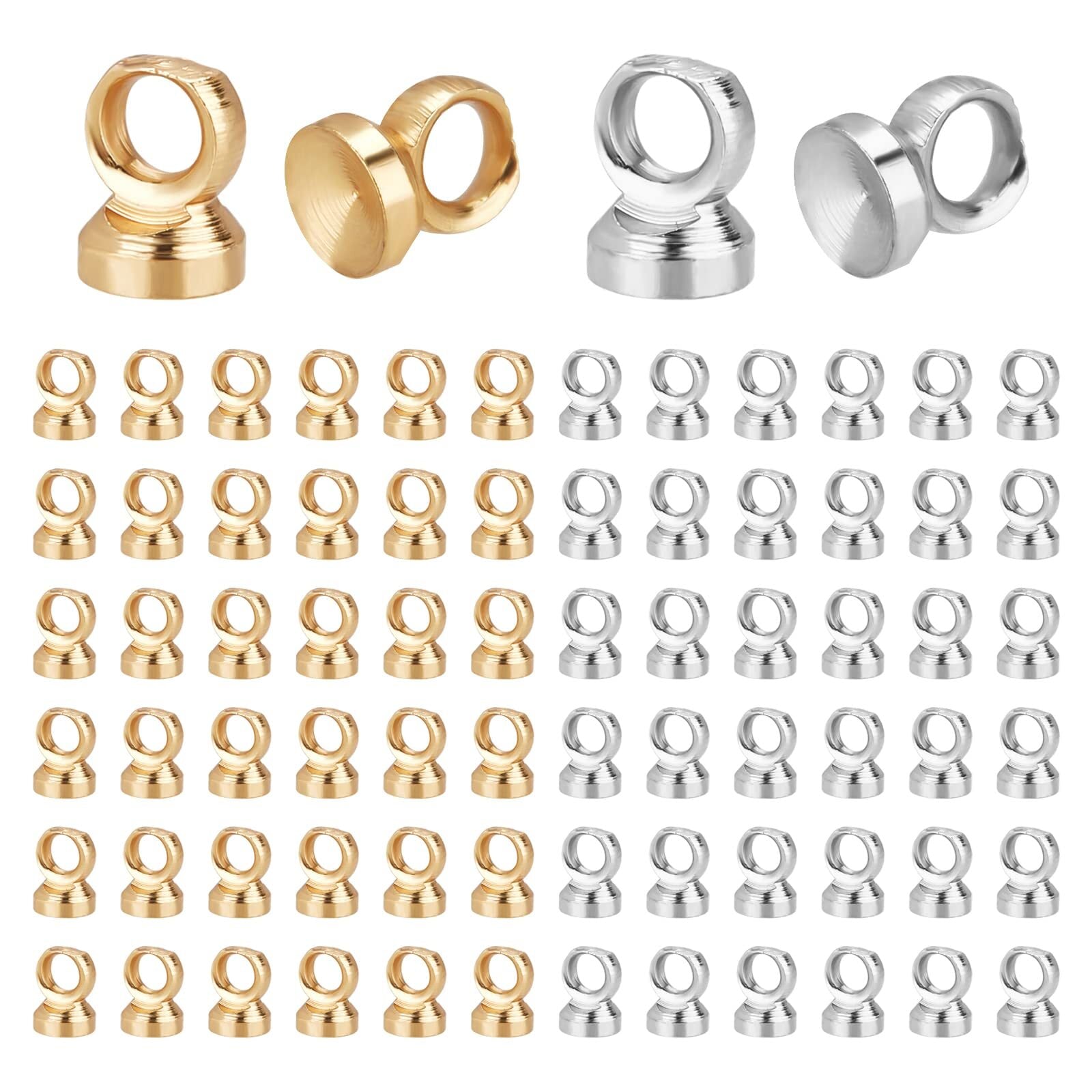 【在庫セール】PH PandaHall 約200個セット ヒートン ヒートンキャップ ビーズキャップ 2色 ピンなし カン付き イヤリングパーツ レジンアクセサリー 丸ヒートン 接合金具 アクセサリーパーツ チャーム取付カバー ペンダント接続金具 ハンドメイド 手芸用品 クラフト 金具 ゴールド シルバー ケース付き | わくわくSHOP