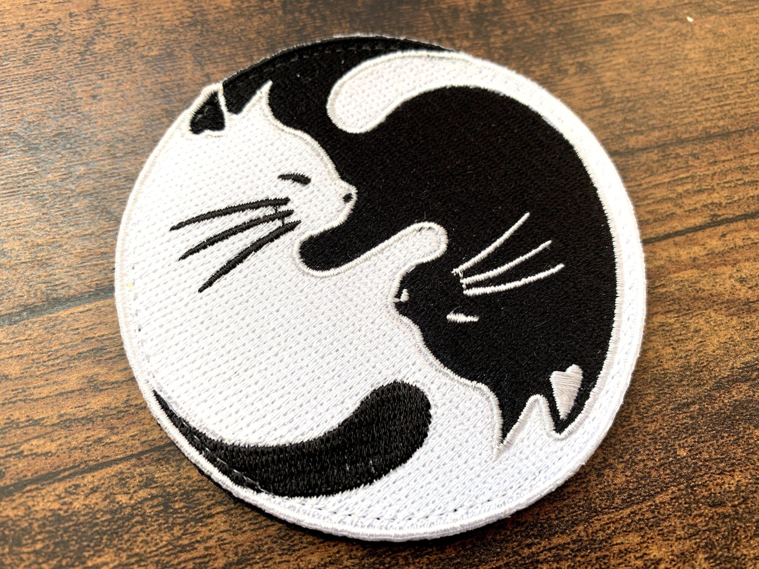 この刺繍ワッペンは、古来から陰陽のバランスを象徴するとされる「太極図(陰陽)」をモチーフにしたユニークなデザイン。 黒と白の猫が円を描きながら調和する姿は、調和とバランスの大切さを表現しており、風水やスピリチュアルの観点でも縁起の良いデザインです。 愛猫家や猫モチーフのアイテムを集めている方にもぴったりのワッペンです。
