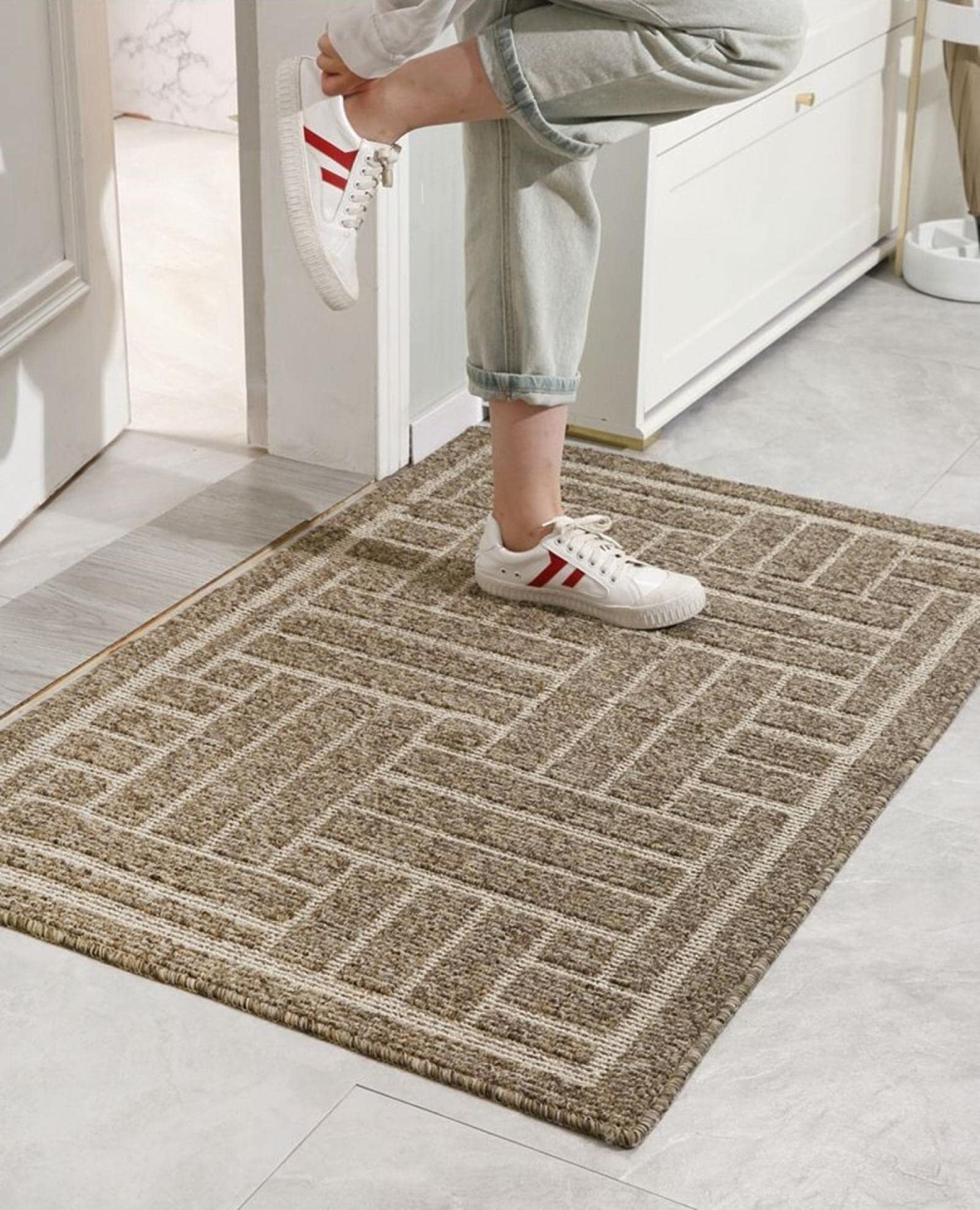 玄関マット 室内 おしゃれ ラグ カーペット ドアマット 屋外マット シンプル 泥落としマット 泥除けドアマット 泥落とし 泥除け 砂落とし 洗える 滑り止め 防音 吸水 業務用 家庭用 店舗 オフィス 事務所 庭 80x100cm ブラウン