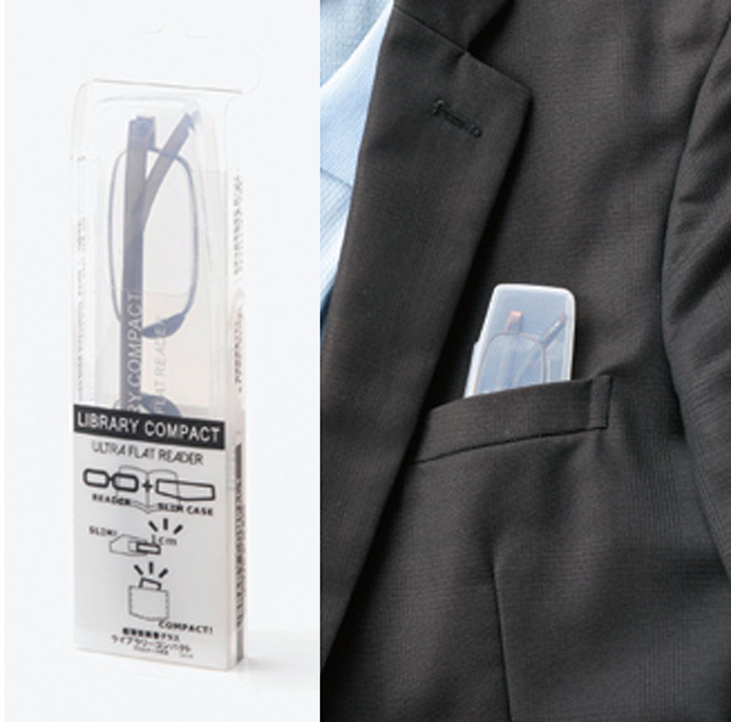 超薄型、軽量、専用ケースも超薄型で持ち運びもしやすい老眼鏡。