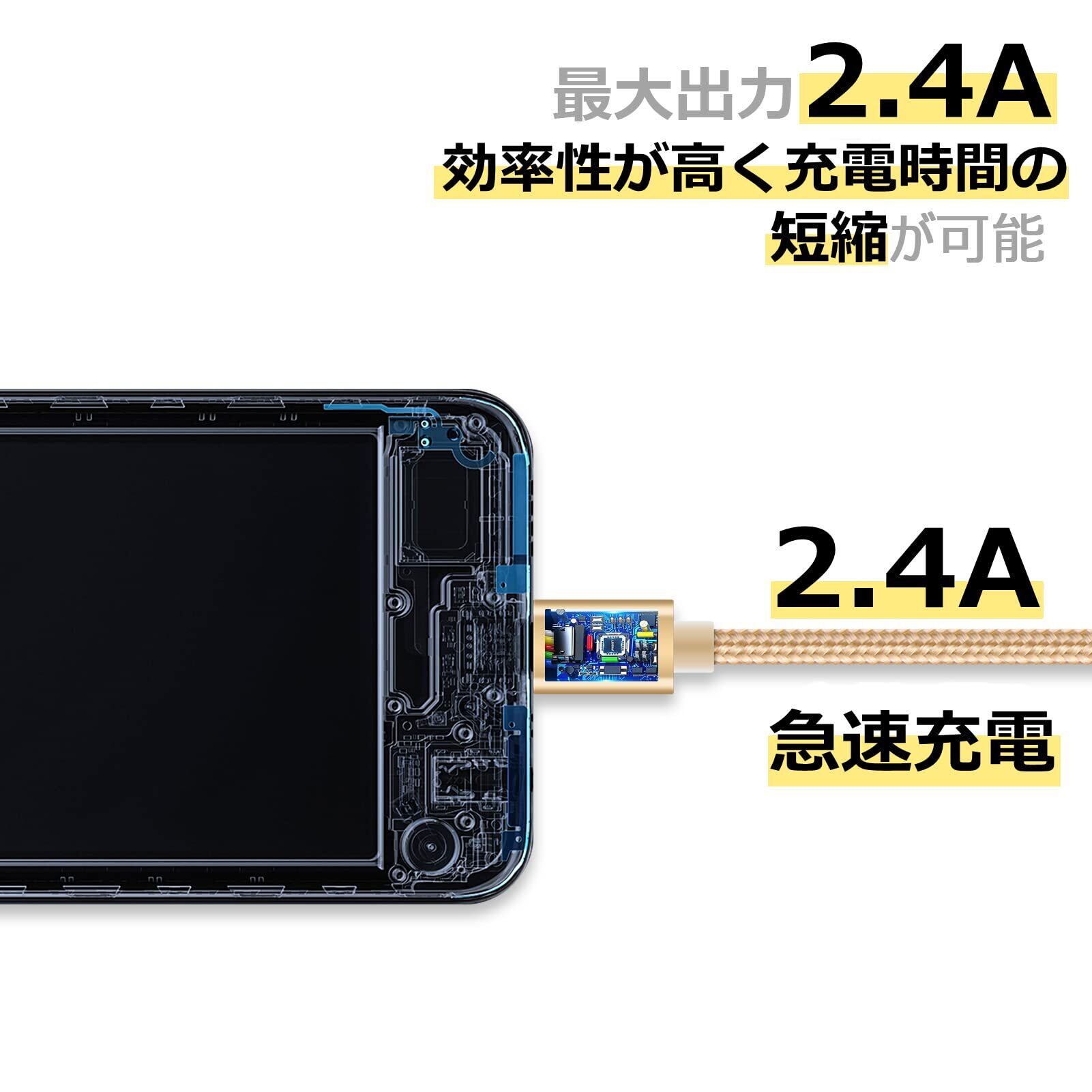 【急速充電・データ転送】このusb c ケーブルは、最大2.4A電流まで対応し、電気抵抗を減少し、充電時間が大幅に短縮されます。市販のケーブルより、充電スピード40%も速くなります。充電の同時に480Mbpsのハイスピードで、パソコンからスマホやタブレットへデータを転送します。