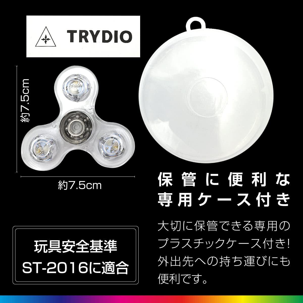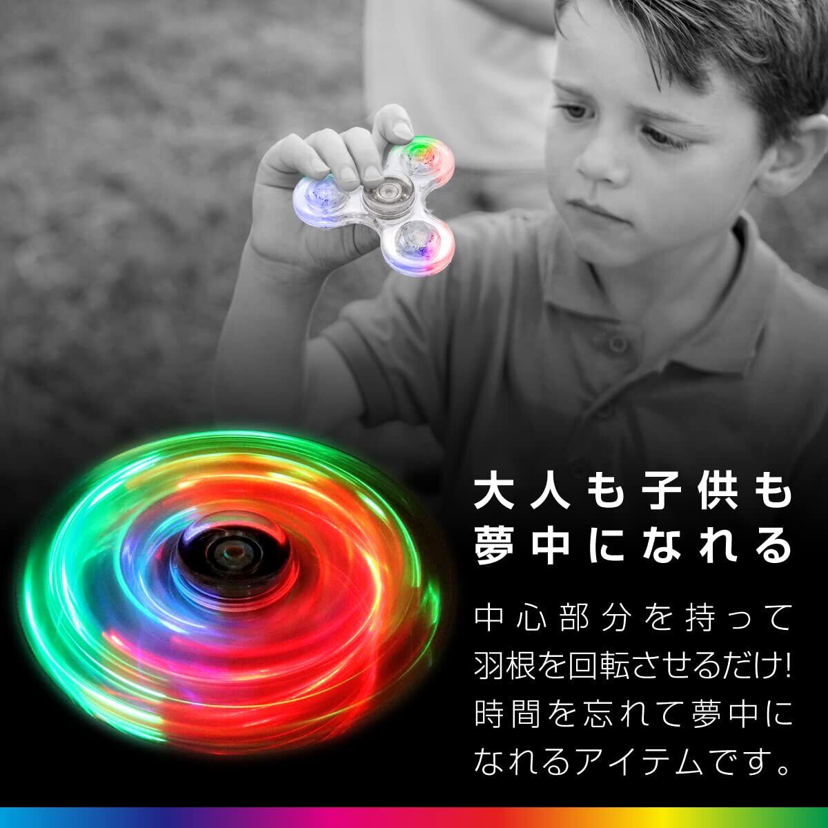 子供から大人まで時間を忘れて夢中になる光る回転スピナーです。長時間の移動・待ち時間・ストレス解消などにもおすすめのアイテムです。汚れや傷が付かないよう、スピナーを大切に保管できる専用の収納ケース付き!コンパクトかつシンプルで外出先への持ち運びにも便利です。
