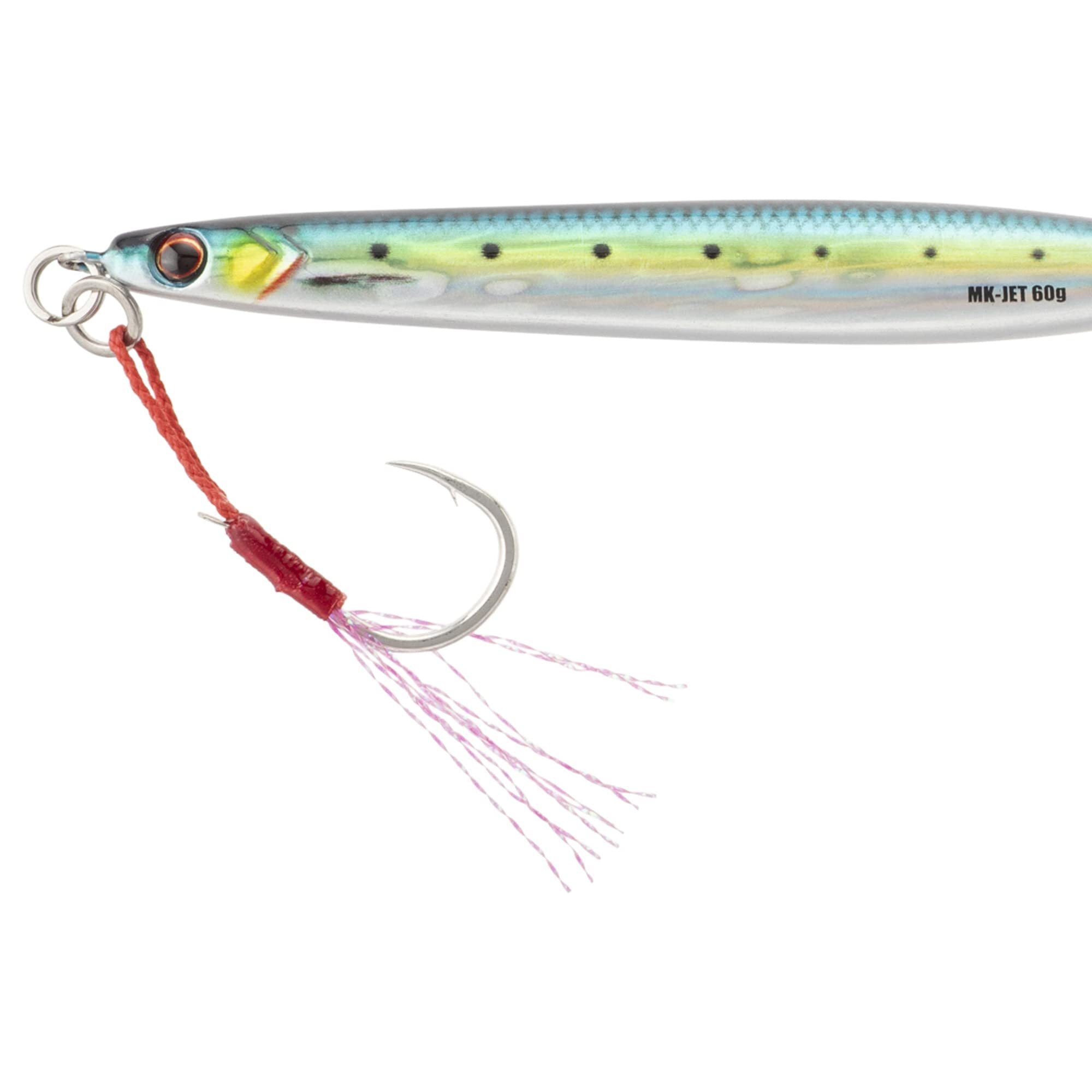 リア重視が驚異の飛距離と素早いフォールで、チャンスを逃がしません。ジグに対して垂直なアイでキャスト&フォール時にフックとブレードを一体化、最大級の飛距離を叩き出します。ロングボディがサワラ・サゴシ狙いにおススメです。
