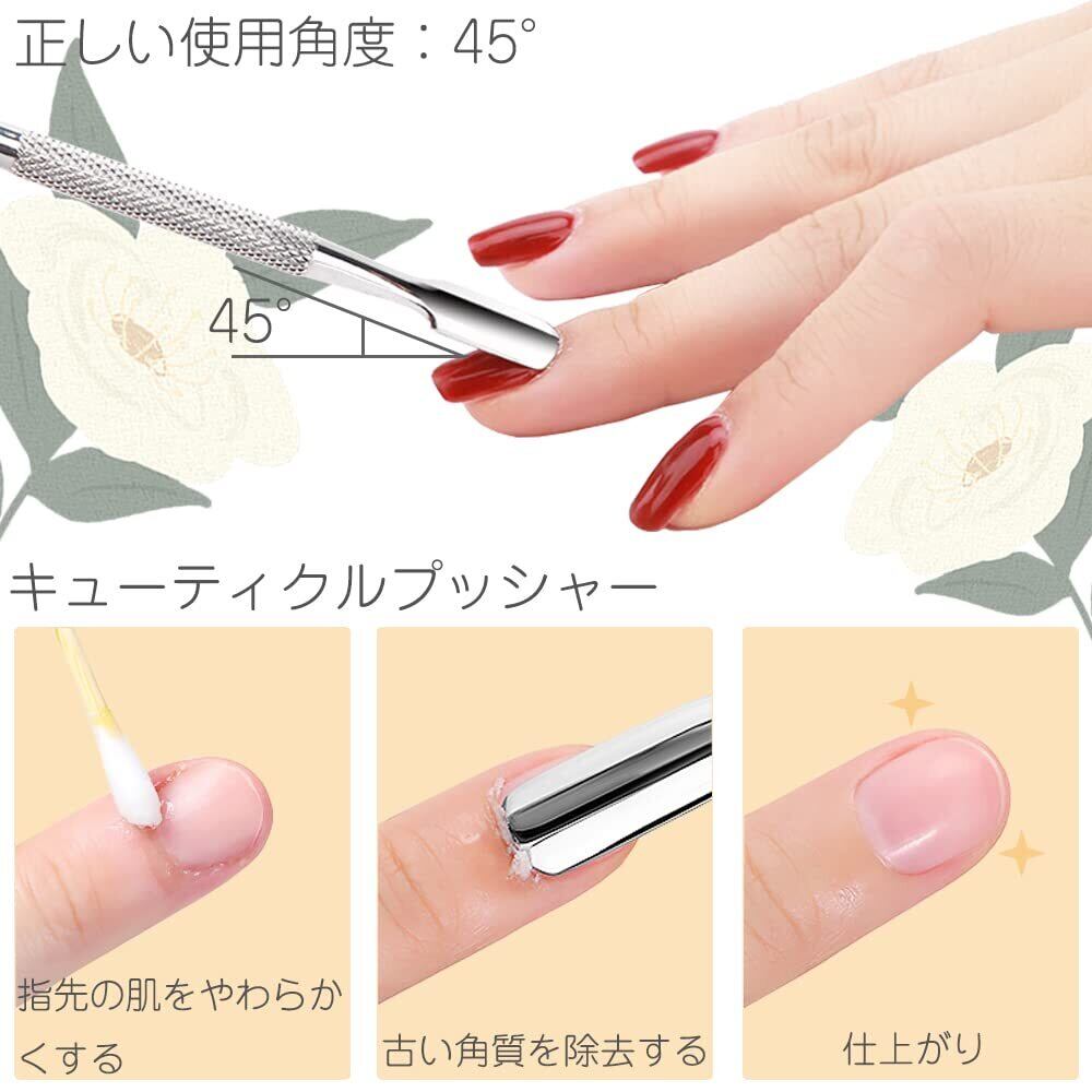 キューティクルプッシャー ネイルツール 1個セット 両面甘皮処理 甘皮ケア 甘皮の除去に 長さ13cm ステンレス製 耐久性 錆びに 滑り止 防水 使いやすい ネイルオフ ジェルネイル用 ネイル用品 (プッシャー&スクレーパー)