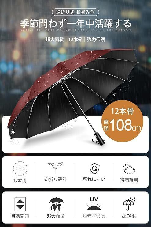 【特価商品】【新設計 超大12本骨】 折りたたみ傘 ワンタッチ自動開閉 UPF50+ 超撥水 逆折り式 折り畳み傘 耐風 超撥水 頑丈 長持ち メンズ傘 大きい 梅雨対策 台風対応 おりたたみ傘 UVカット 紫外線遮蔽 晴雨兼用 傘 収納カバー付き メンズ レディース(レッド) | わくわくSHOP