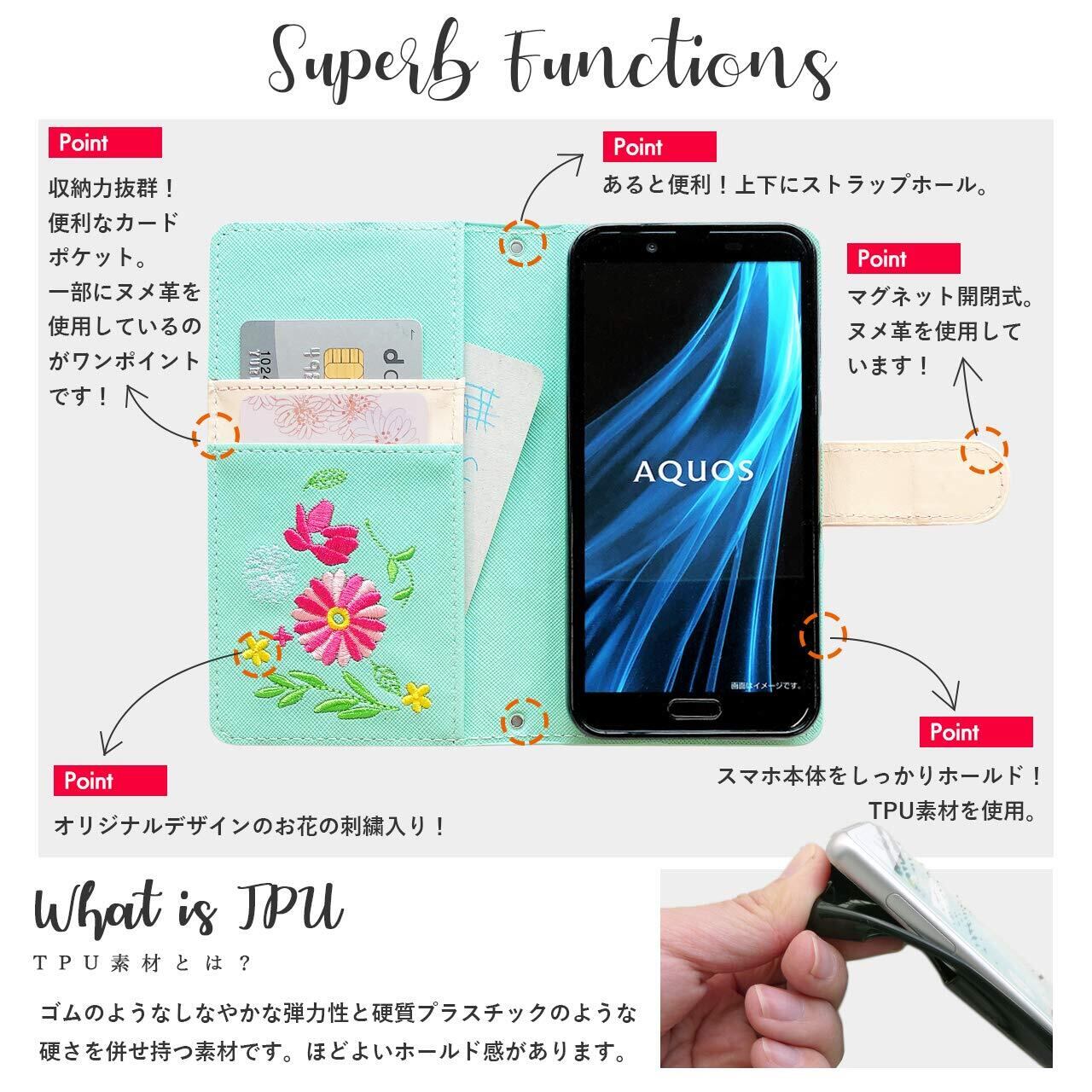 【在庫セール】iPhone 15 plus 手帳型 ケース カバー iPhone15plus iPhone15plusケース iPhone15plusカバー iPhone15plus手帳型 アイフォン 15plus 手帳型ケース スマホケース ちょいヌメ花刺繍 ミント | わくわくSHOP