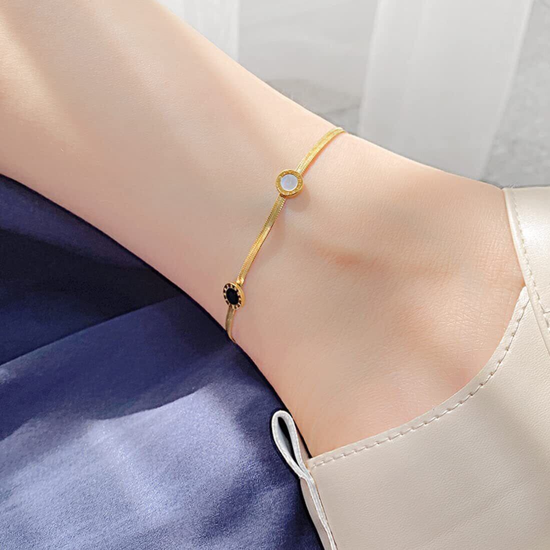 アンクレット レディース ゴールド スネークチェーン コインアンクレット ローマ数字 円形ペンダント チタン 金属アレルギー対応 記念日 誕生日 プレゼント ファッション アクセサリー