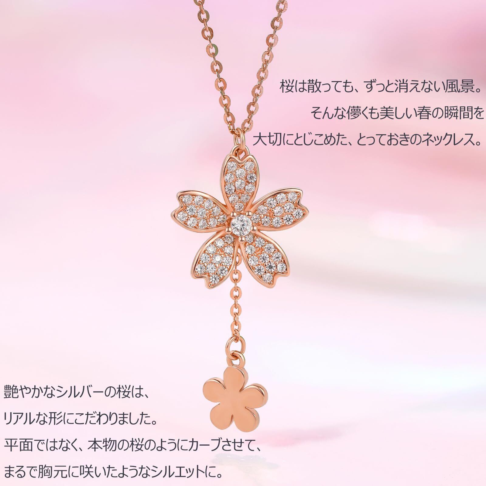 【新春セール】[ZHOU LIU FU] ネックレス レディース 桜 ペンダント シルバー925 人気 ジュエリー ジルコニア ローズゴールド プレゼント シンプル アクセサリー 可愛い キラキラ さくら チェーン おしゃれ 純銀製 鎖骨チェーン 18金コーティング | わくわくSHOP