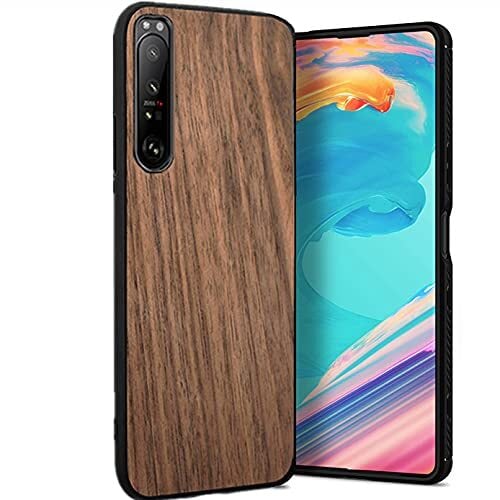 SAWEI 天然木 Xperia1 III 5G SO-51B SOG03 ケース TPU ウッド 木製 ケース ストラップホール付き 耐衝撃 ソフトケース 軽量 (Xperia 1 iii)