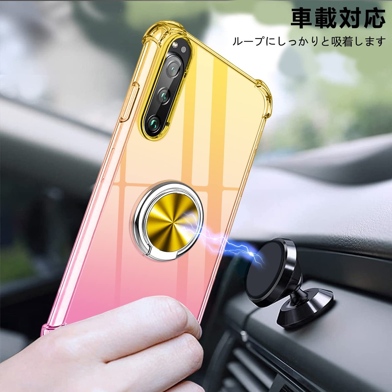 Xperia 5 ケース リング付き クリア 薄型 グラデーション色 ケース 軽量 tpu 耐衝撃 SO-01M SOV41 901SO スマホケース 透明 米軍MIL規格取得 おしゃれ 黄変防止防塵一体型 人気 車載ホルダー ソニー エクスペリア 5 携帯カバー グラデーション緑 MD-SXZH-07-01