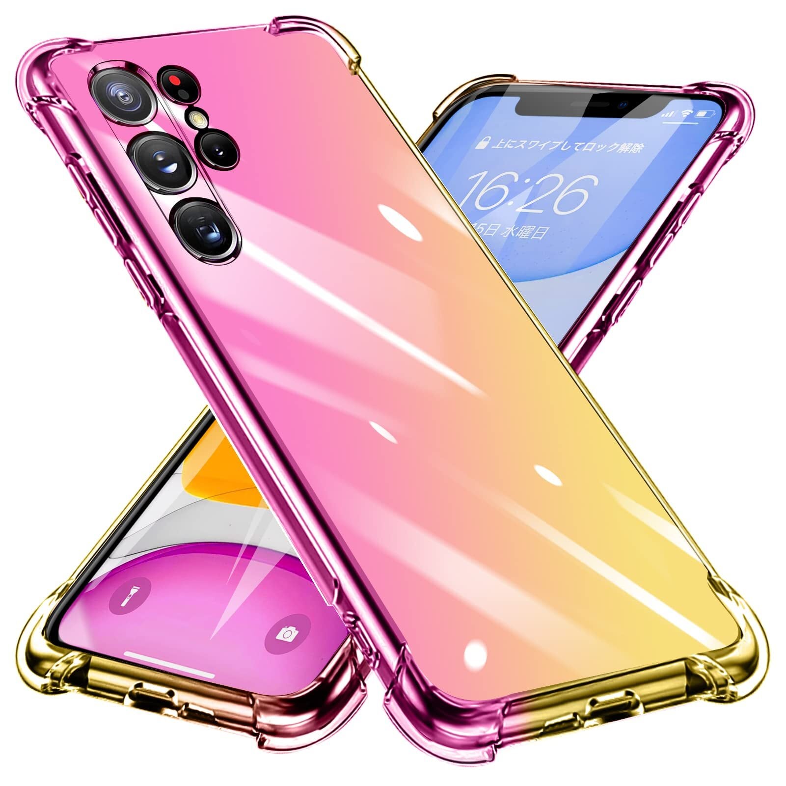 Galaxy S22 Ultra ケース クリア TPU グラデーション色 耐衝撃 ギャラクシーS22 Ultra カバー 透明 一体型 落下防止 防塵 変形防止 サムスン カバー ピンク/ゴールド W-CSZH-024-01