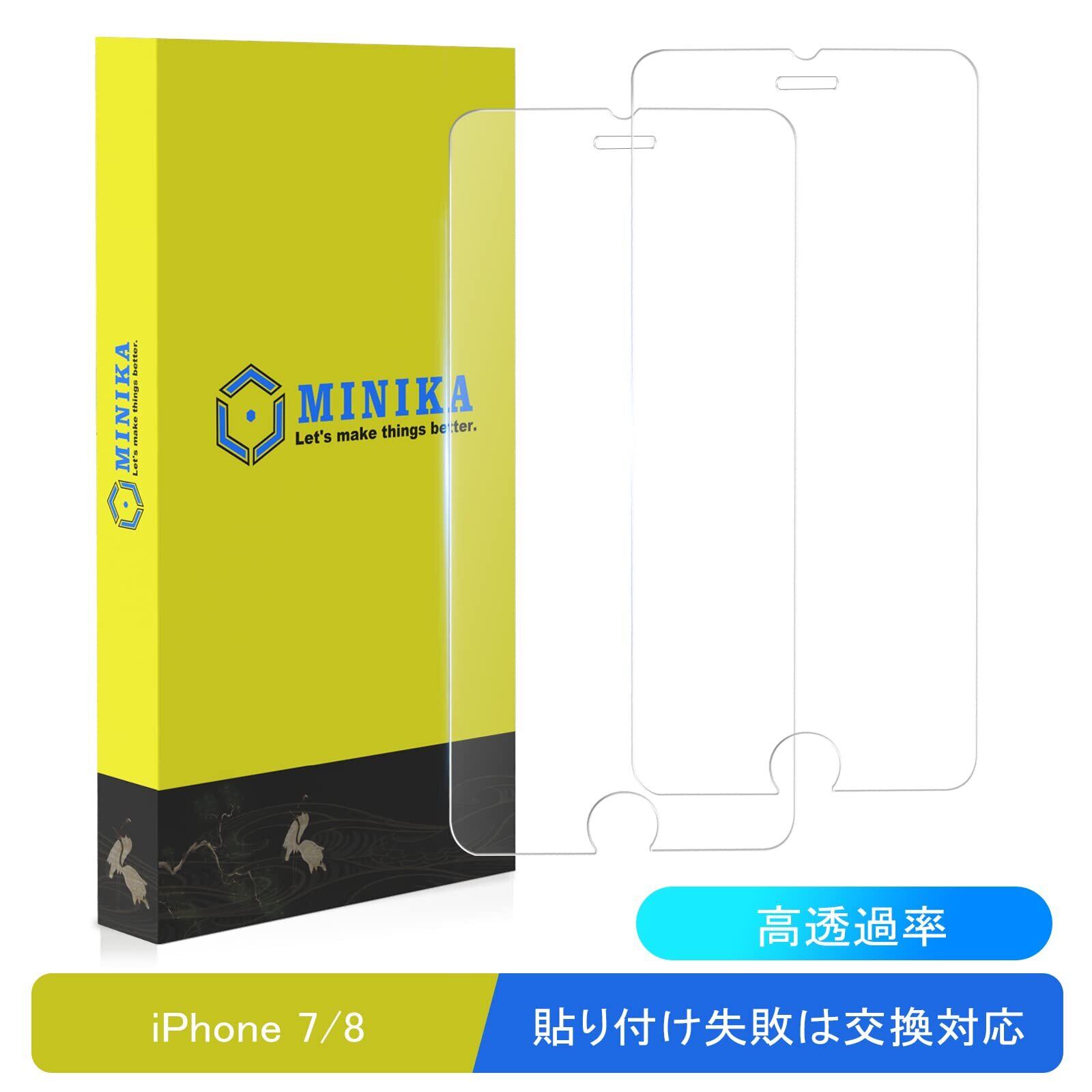 MINIKA 対応 iphone7 ガラスフィルム iphone8保護フィルム アイフォン8/7 用 強化ガラスフィルム 極薄タイプ iphone8 液晶フィルム 保護シート 浮きなし/秒で貼り付け/高透過率/硬度9H/指紋軽減 あいふおん7/8 ガラス【2枚セット】