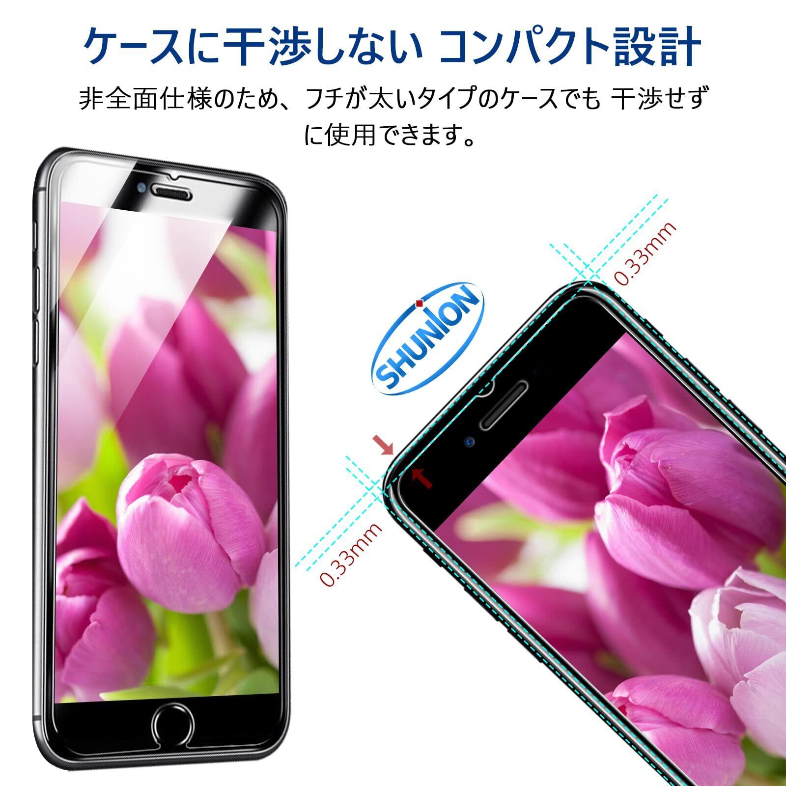 【透明度拔群!撥水撥油、指紋防止】:SHUNIONのいphone8 強化ガラスフィルム 透過率98%で、iPhone元々の画質が損なわず、付いていることを忘れるくらい透明度をもっています。更に、蒸着材料を加熱し昇華して、フィルムの表面に疎油性の指紋防止コーティングを形成します。従来の保護ガラスフィルムより汚れ防止効果は3倍長く持続し、付着した汚れも簡単に拭き取ることができます。