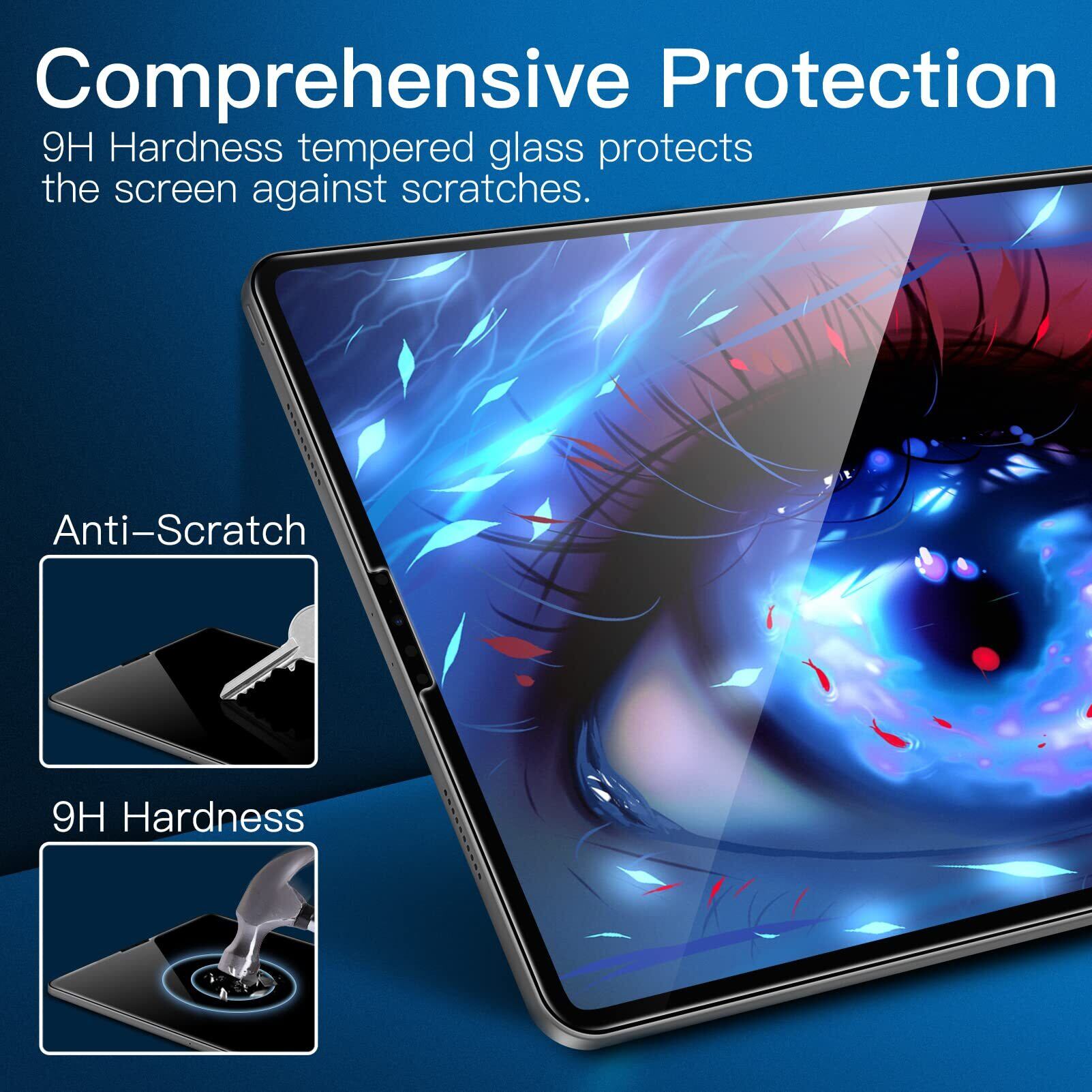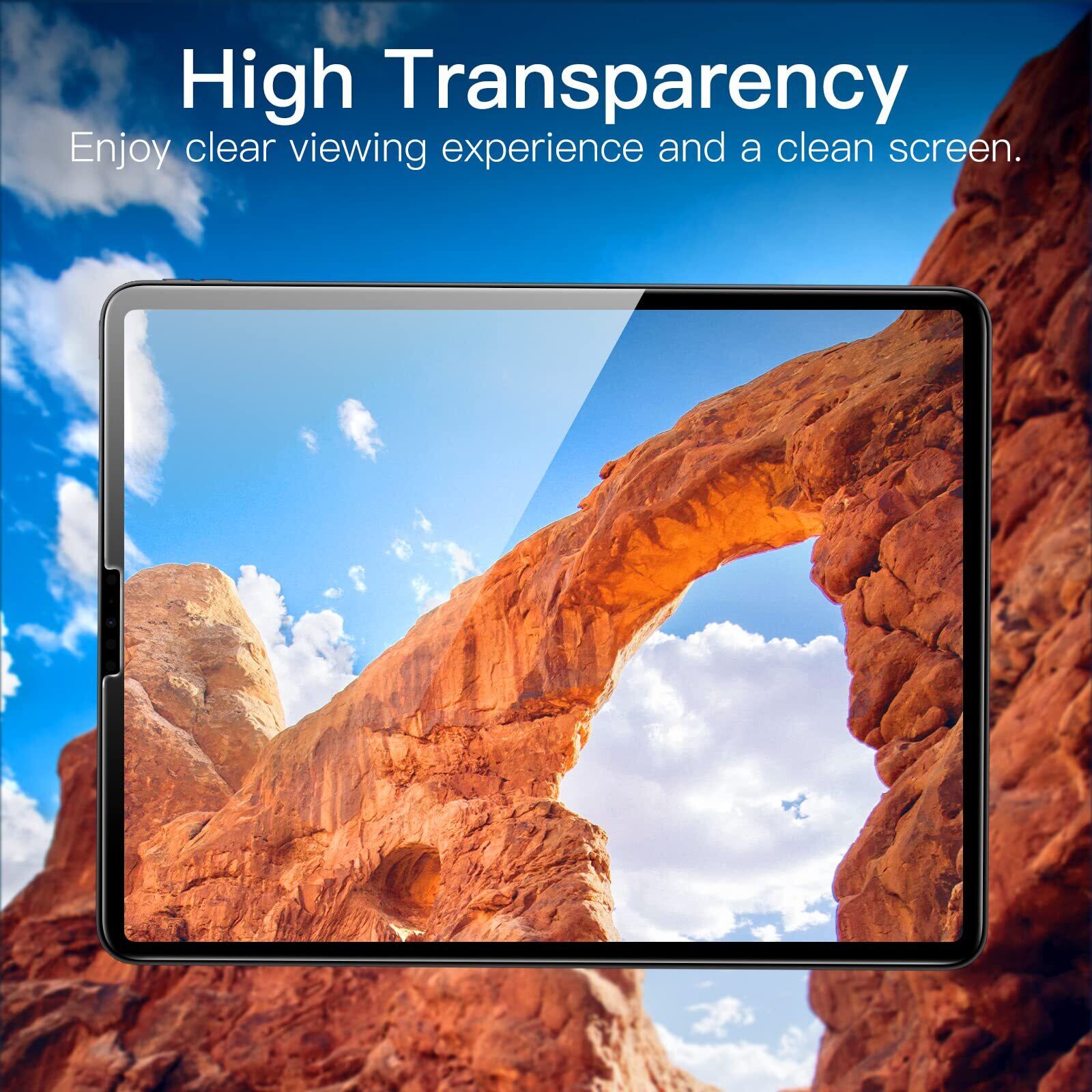 JETech ワンタッチ貼り付けフィルム iPad Pro 12.9インチ (2022/2021/2020/2018モデル、第6/5/4/3世代用) 強化ガラス ガイド枠付き HDクリア
