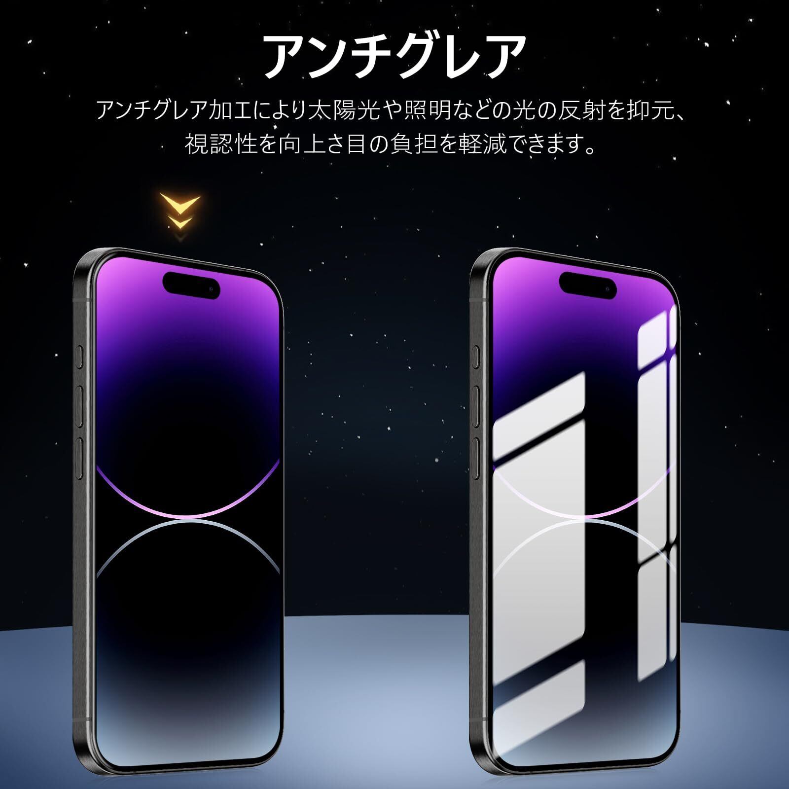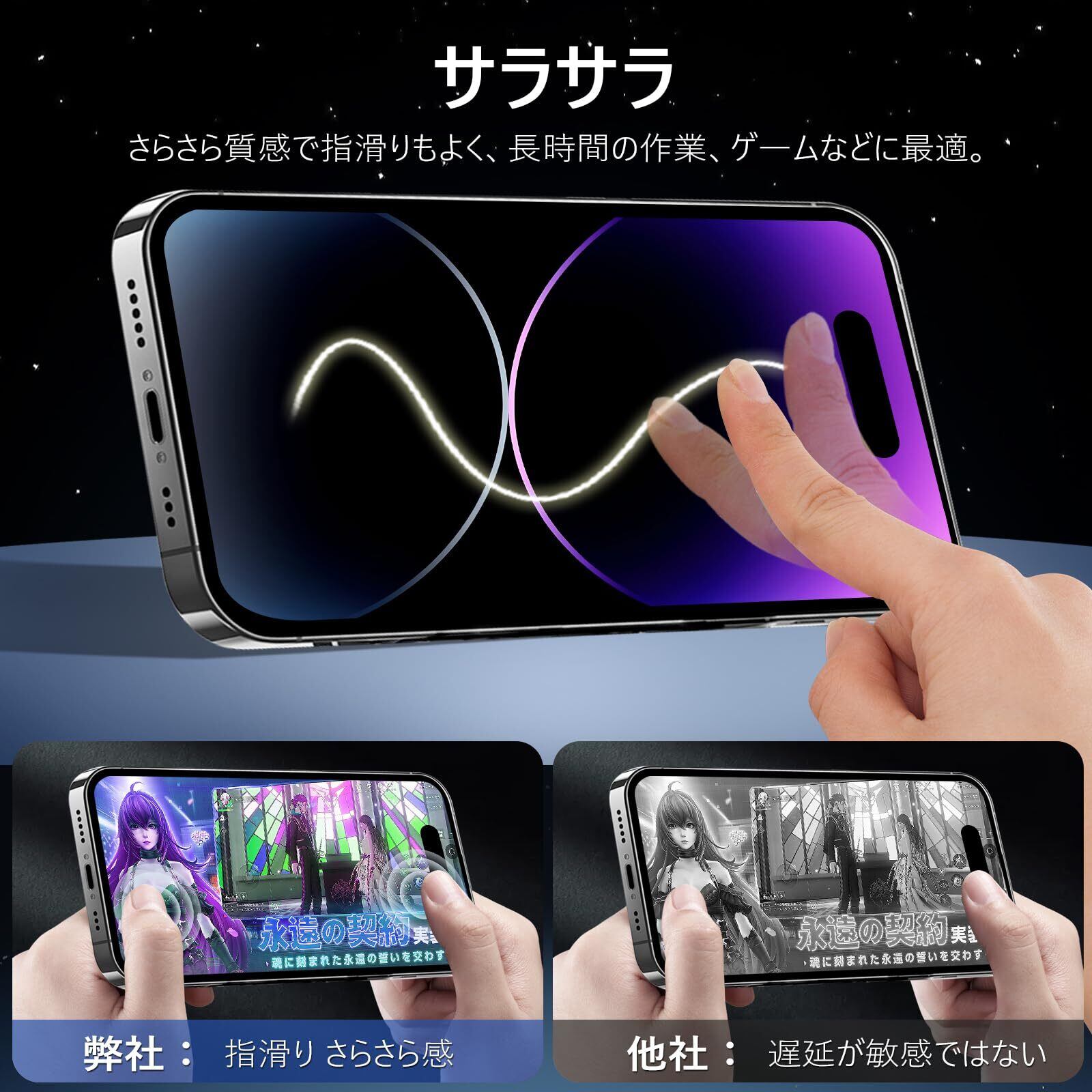 【アンチグレア・指紋防止・高感度タッチ】 アンチグレア(非光沢)タイプのさらさらで快適な操作感。光の反射を軽減し、より目に優しくちらつきを抑えます。同時に、iPhone14プロマックスガラスフィルムには撥油コーティングが施されており、指紋や汚れなどに強くなめらかな操作感を実現、付着した汚れなどは簡単に拭きとれます。こちらは高耐久撥油コーティングが施され、つるつるな滑り感を実現!ゲームをする人におすすめです。
