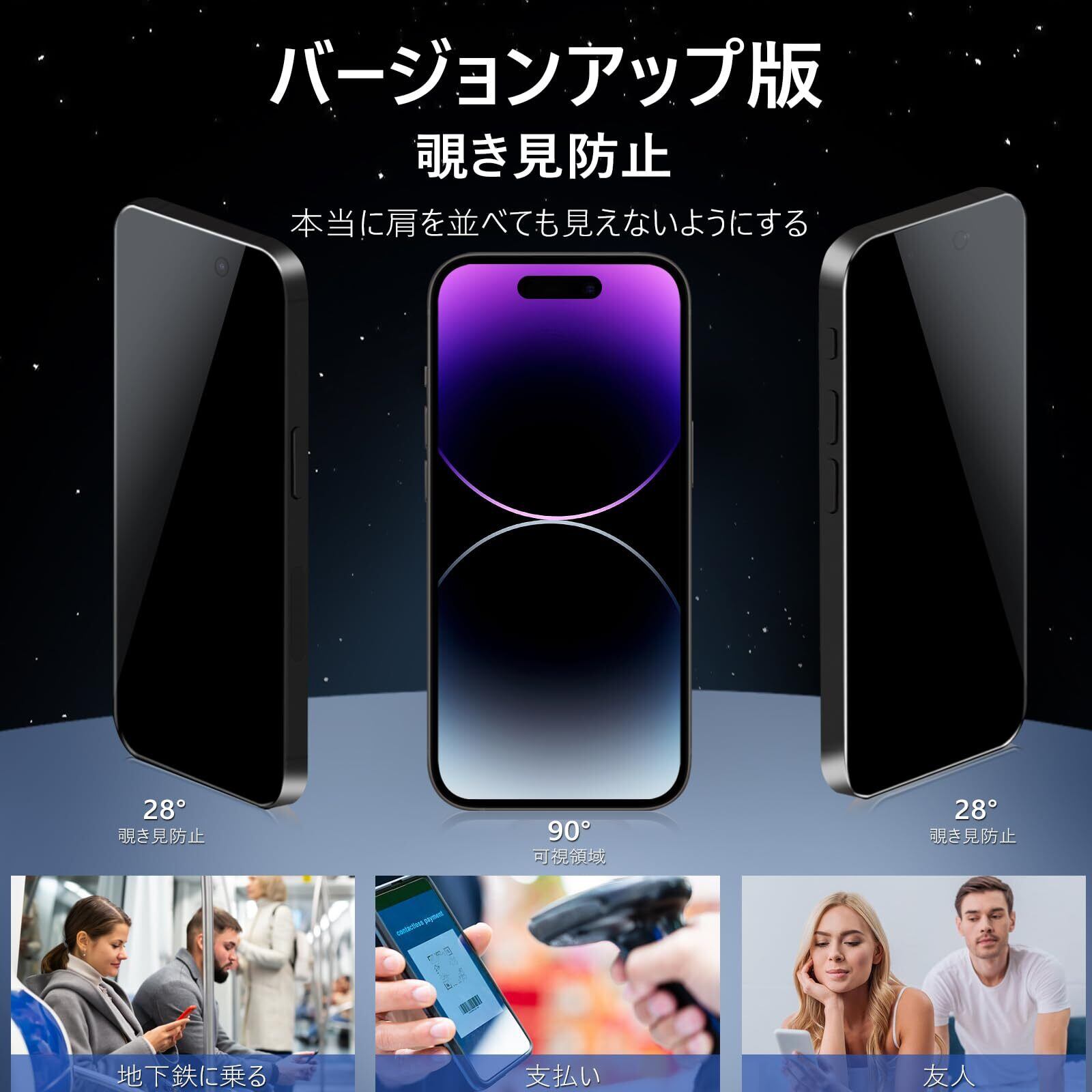 【2in1・多機能】 新技術を取り入れた2in1保護フィルムは、アンチグレア&覗き見防止機能を兼ね備えています。画面操作時の手触りをさらに改良し、より滑らかでサラサラな使い心地を実現しました。 【対応機種】 iPhone 14 Pro max 用(6.7インチ対応)。【パッケージ内容】 iPhone14 Pro max ガラスフィルム * 1枚セット + iPhone14Promax カメラフィルム * 1枚セット + ガイド枠 * 1枚。