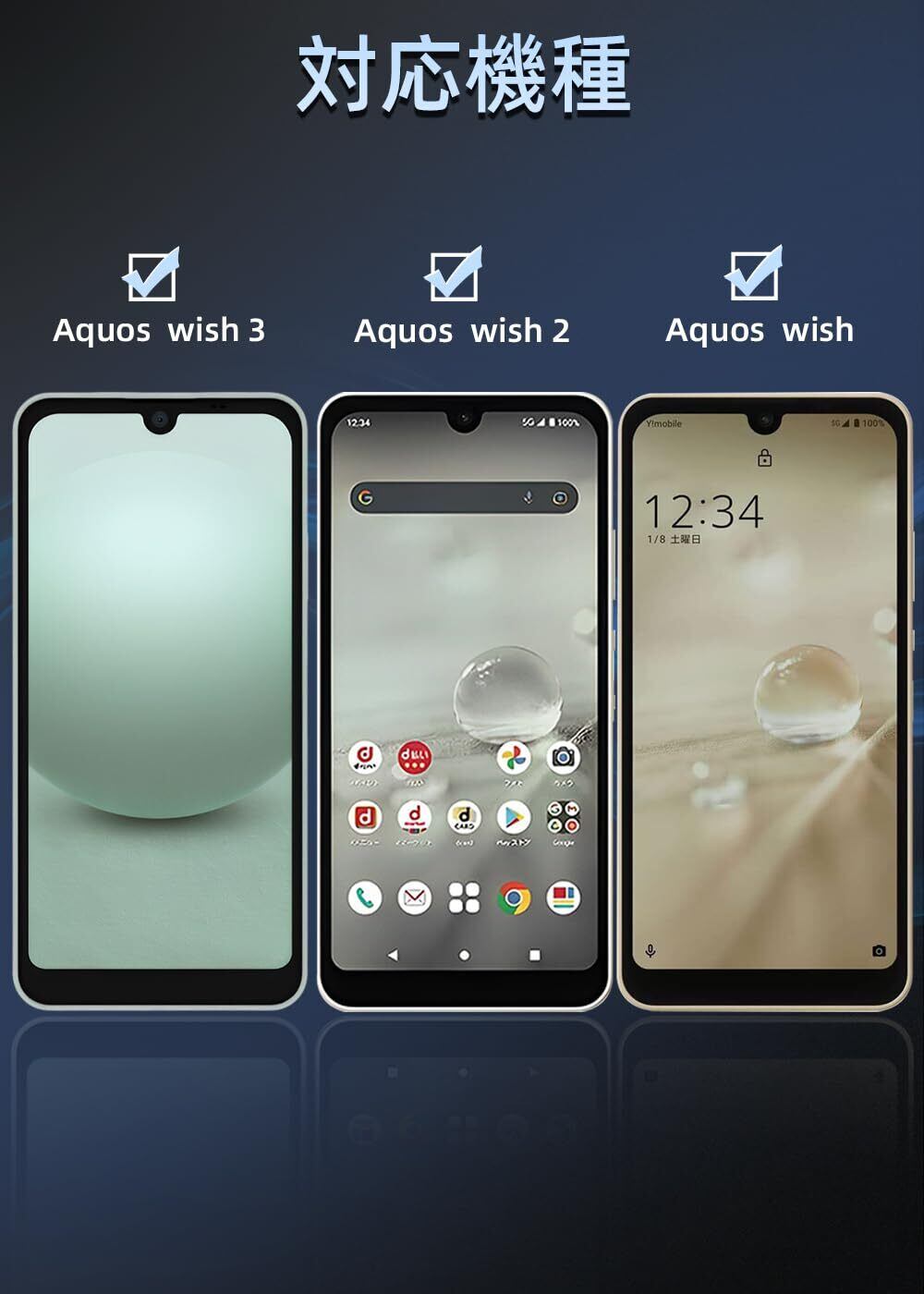 【対応機種】Aquos wish3 SH-53D A302SH / AQUOS wish2 SH-51C / AQUOS wish SHG06h 用ガラス保護フィルム。高耐久性防汚のフィルムに特殊コーティングにより指紋や汚れが付きにくくなっています。超薄型保護フィルムは鮮明な99%の高透過率、自然な見た目です。