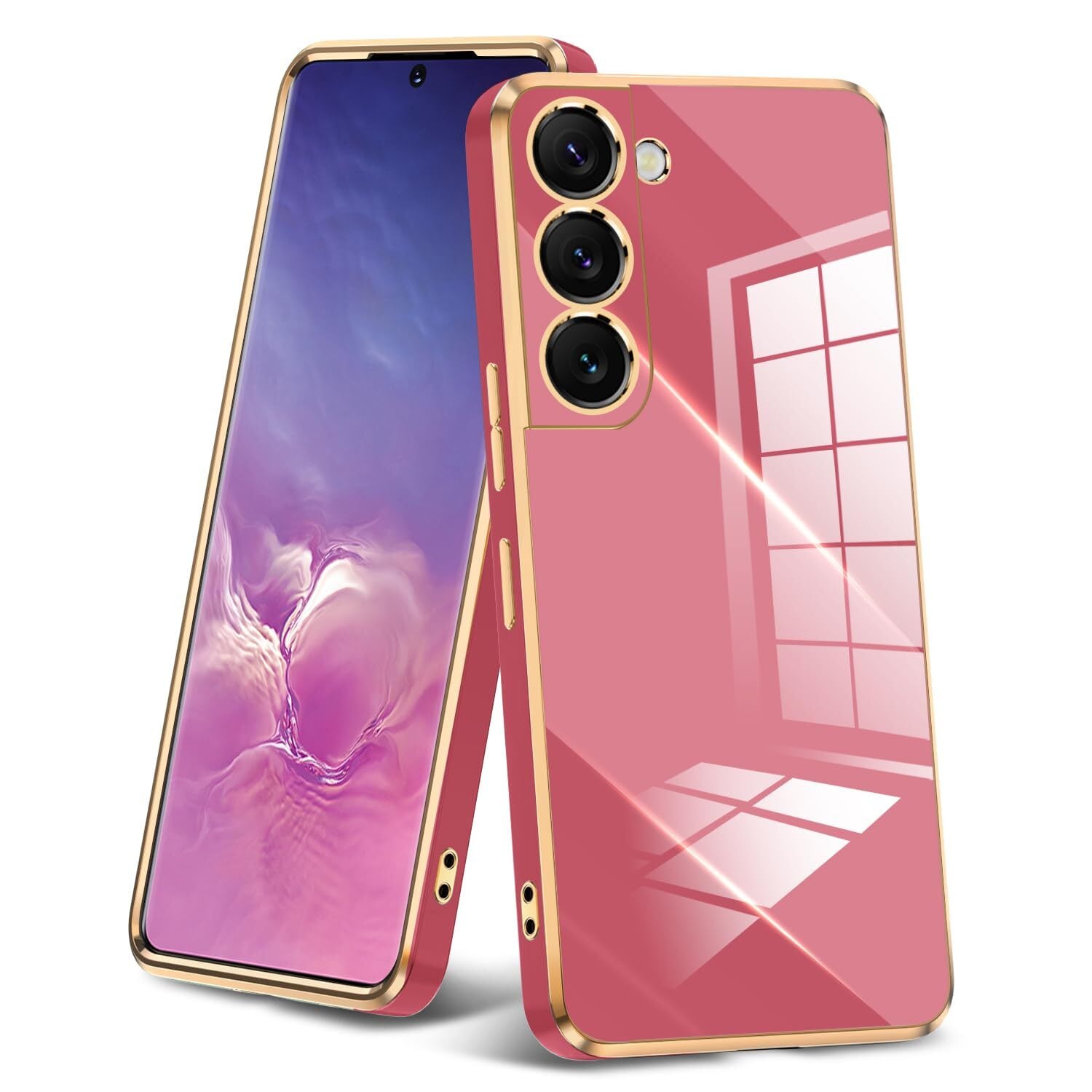 【人気商品】Galaxy S21 用ケース 薄型 TPU クリア 耐衝撃ケース レンズ保護 ソフトケース 透明 メッキ加工 ワイヤレス充電 ギャラクシーS21 用カバー ラップホール付き 軽量 メッキ枠 レッド/ゴールド JP2-151 | わくわくSHOP