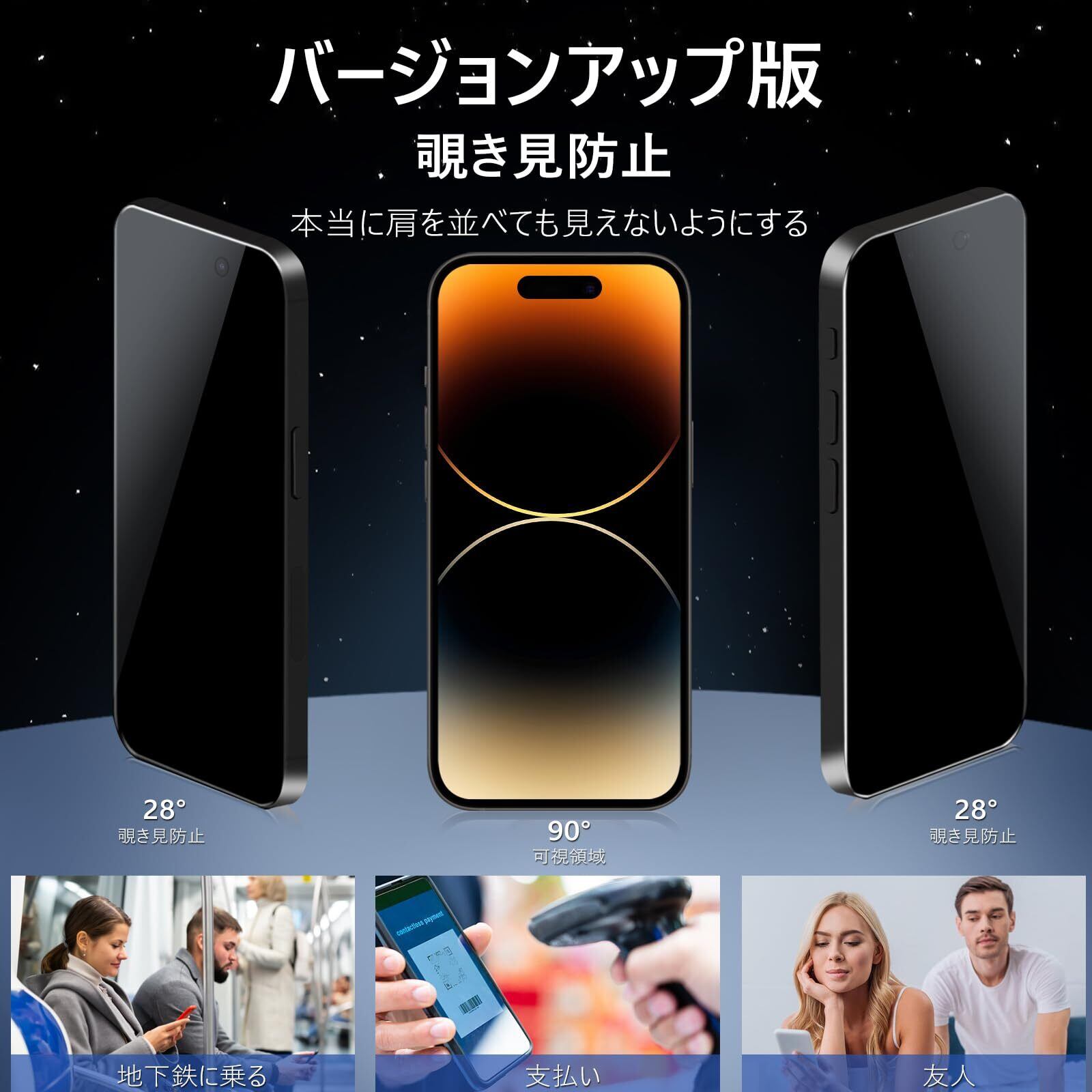 【覗き見防止・プライバシーフィルム】 覗き見防止技術により、左右の視野からの視線を防ぎ、画面のプライバシーを守ります。電車などでも安心のプライバシー保護フィルムです。MINIKAのiPhone14Pro覗き見防止フィルムは斜めから見るとブラインドルーバーにより画面が真っ黒になりますが、真正面から見ると高透過率ではっきり見ることが出来ます。