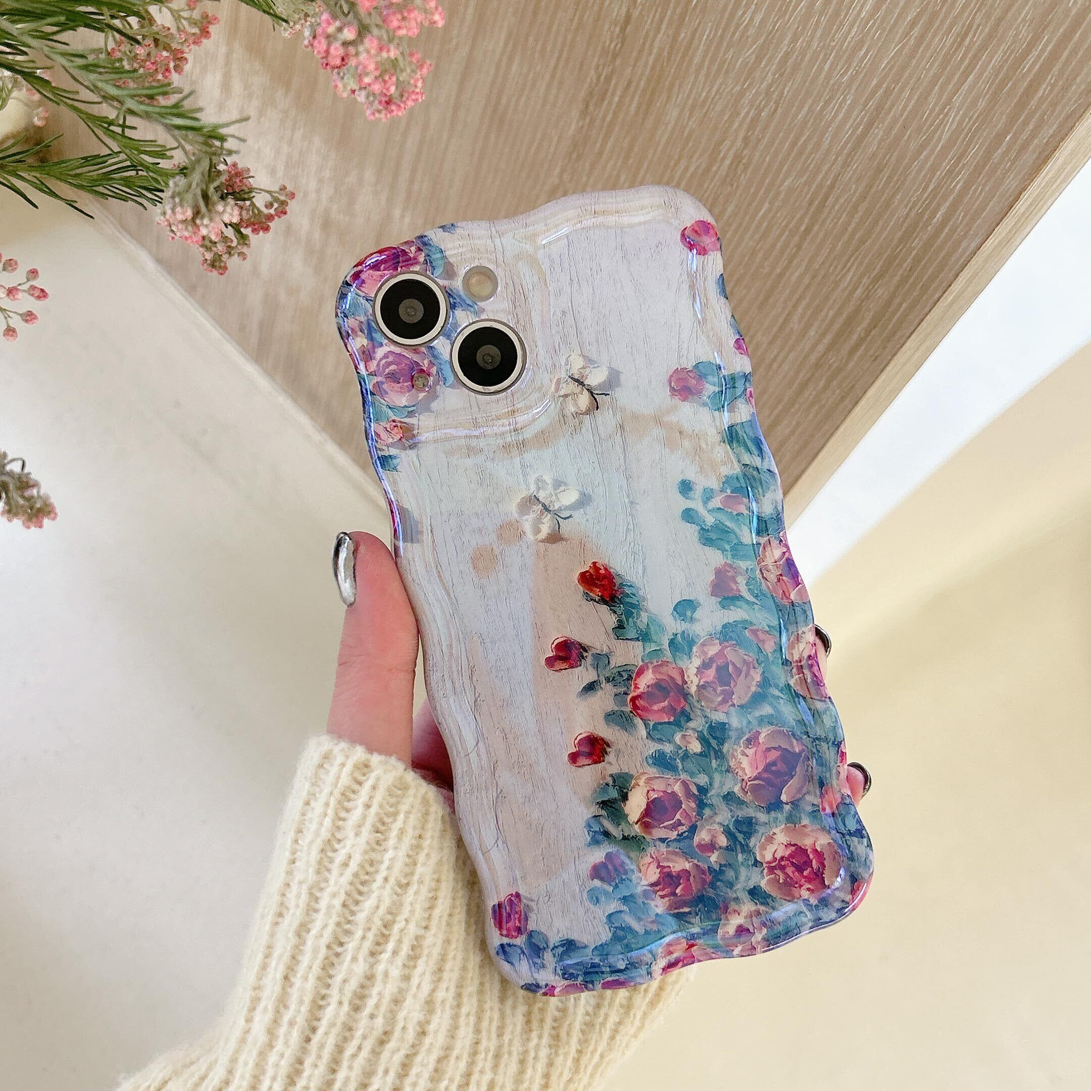 【花柄デザイン ▪ フィット感】背面にカラフルな油絵の花柄、色味が優しく、いつものスマホに上品さをプラス。側面が透明なデザインからiPhone 13カラーが見えるデザインで、本来の美しさと高級感をそのままに映り出し。