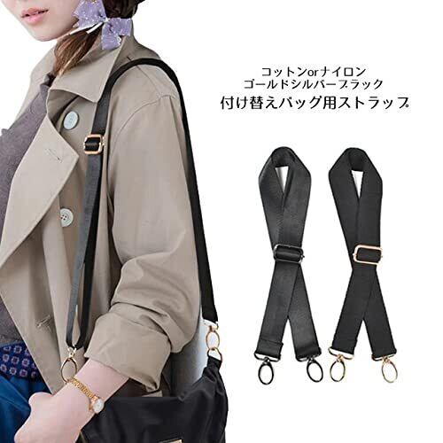 [Lelotte] ショルダーストラップ バッグ用 選べるコットン ナイロン 素材 ショルダーベルト 幅広 交換用 STP-BK