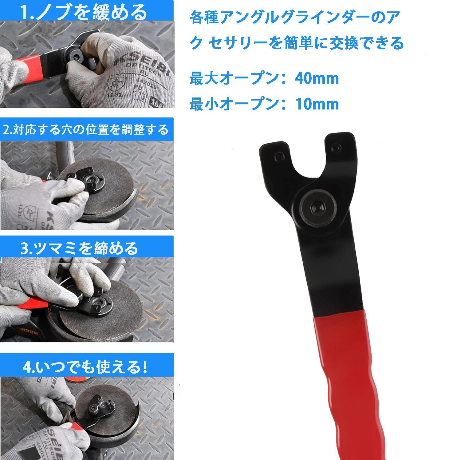 KEWAYO アジャストピンレンチ グラインダー スパナ 10-40mm 調整可能 アジャストピンレンチ ロックナット ディスクグラインダー用(赤)