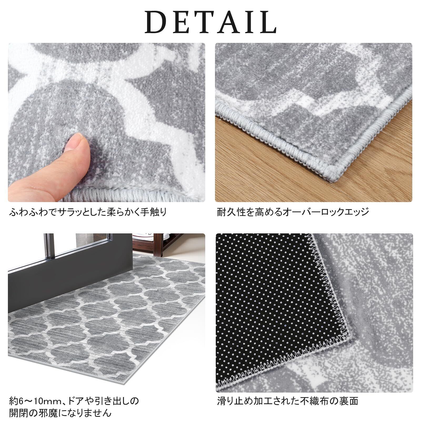 HAOCOO カーペット モロッコ柄 北欧風 ふわふわ 70х120cm 洗える ラグ おしゃれ 1畳 滑り止め ホットカーペット対応 低反発 防音 ラグマット アンティーク オールシーズン適用 軽量 グレー