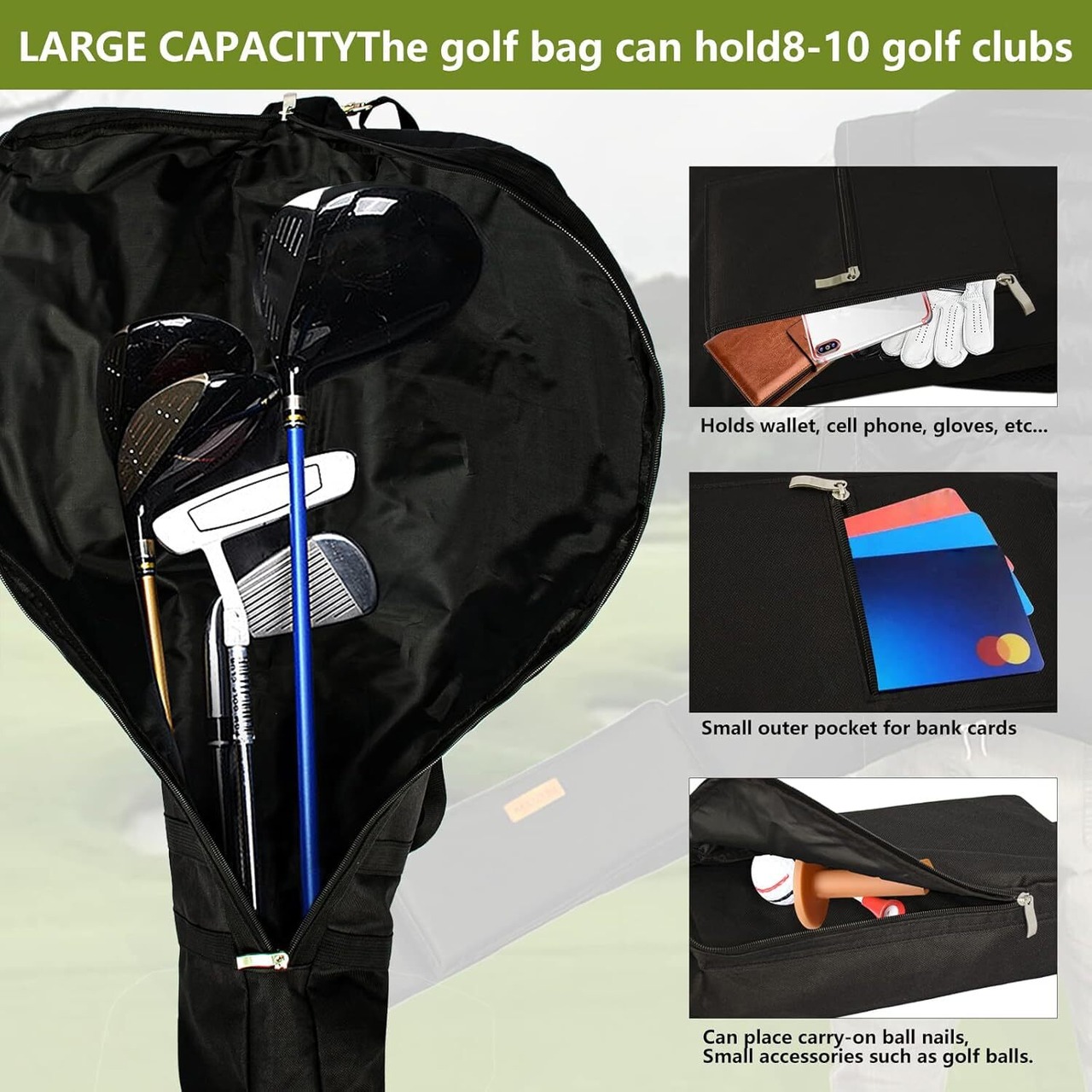 AKOZLIN ゴルフ クラブケース 8〜10本以上 軽量 ゴルフバック 3ポケット付き ソフトクラブケース 折りたたみ 練習用 大容量 コンパクト収納 オックスフォードクロス ブラック
