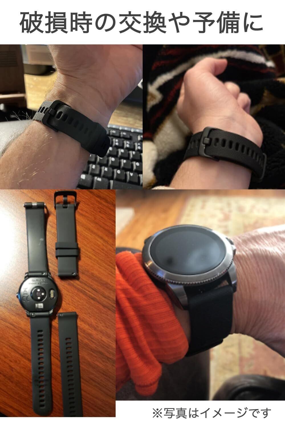 【2022最新】[wumio] Garmin vivoactive 4 互換 交換バンド 22mm 黒 シリコン 防水 forerunner 255 Venu 2 対応 ガーミン ベルト 交換 予備 消耗 シリコンバンド | わくわくSHOP