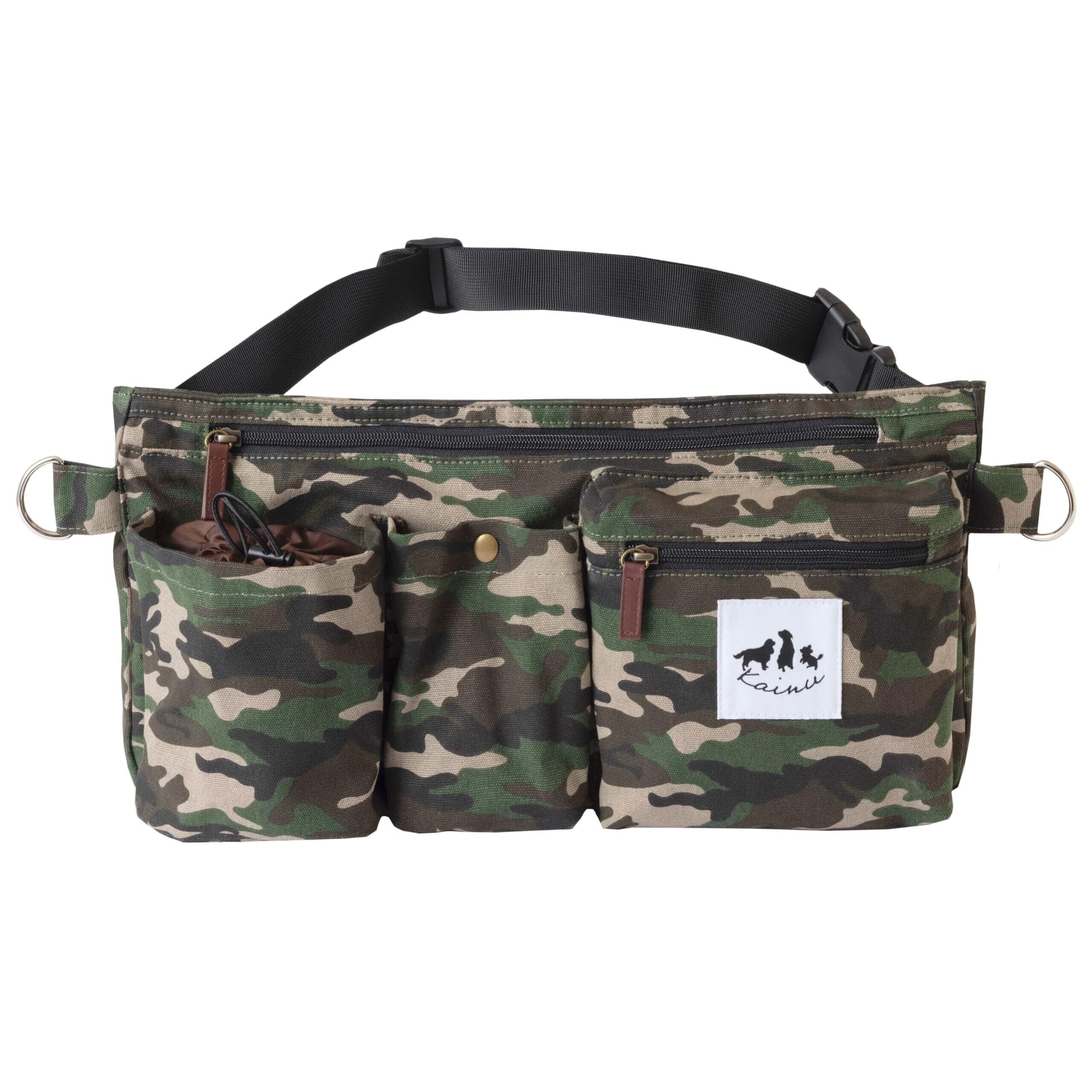 【在庫セール】KAINU 犬用 お散歩バッグ ウエストポーチ お散歩 アウトドア お出かけ 帆布 ペット バッグ トリーツポーチ ポーチ 散歩グッズ (迷彩柄)