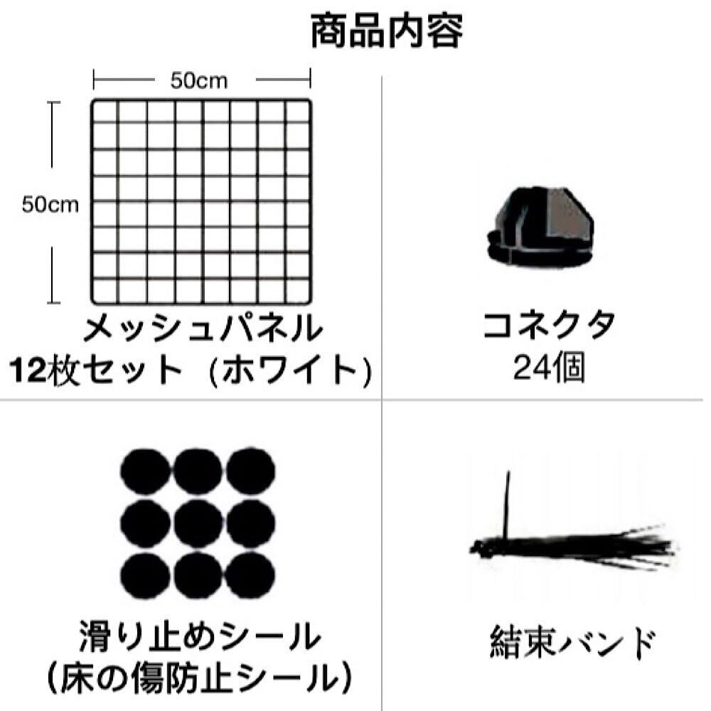 商品詳細 本体 金属製パネル:サイズ50×50cm、12枚; コネクタ:24個; 付属品 ハンマー、滑り止め シール、結束バンド;色:ホワイト。 当店のペットフェンスは、 犬、うさぎ、モルモット、フェレット、チンチラなどの小動物に最適で、 室内、庭、テラスなどに適しています。 メッシュパネルはスチールで作られ、 外力による形崩れの心配はありません。 連結パーツのコネクタは合成樹脂製で作られているので、 ペットフェンスを一枚一枚ぴったりと固定し頑丈です。 また、使用目的によっては、ペットフェンス、ケージ、室内サークル、ペット柵などの使用だけではなく、 室内を綺麗に整理整頓できる、収納ラックや、収納棚としてもご使用頂けます。