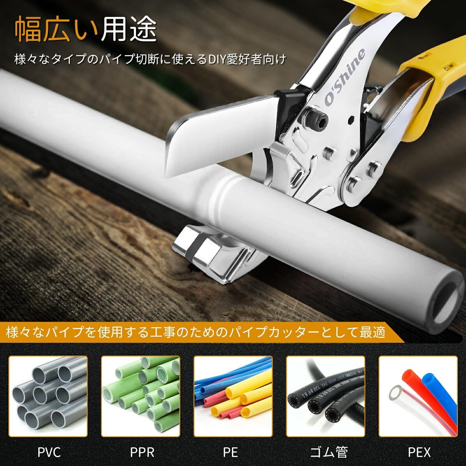 【切れ味の良い日本製SK5刃】日本から輸入した刃材をHRC54の硬度に熱処理し、熟練の職人によって一本一本研磨された鋭い刃です。 O'Shine PVC パイプ カッターは、プラスチック パイプを損傷したり変形させることなくきれいに切断します。 注:金属パイプの切断には使用できません。