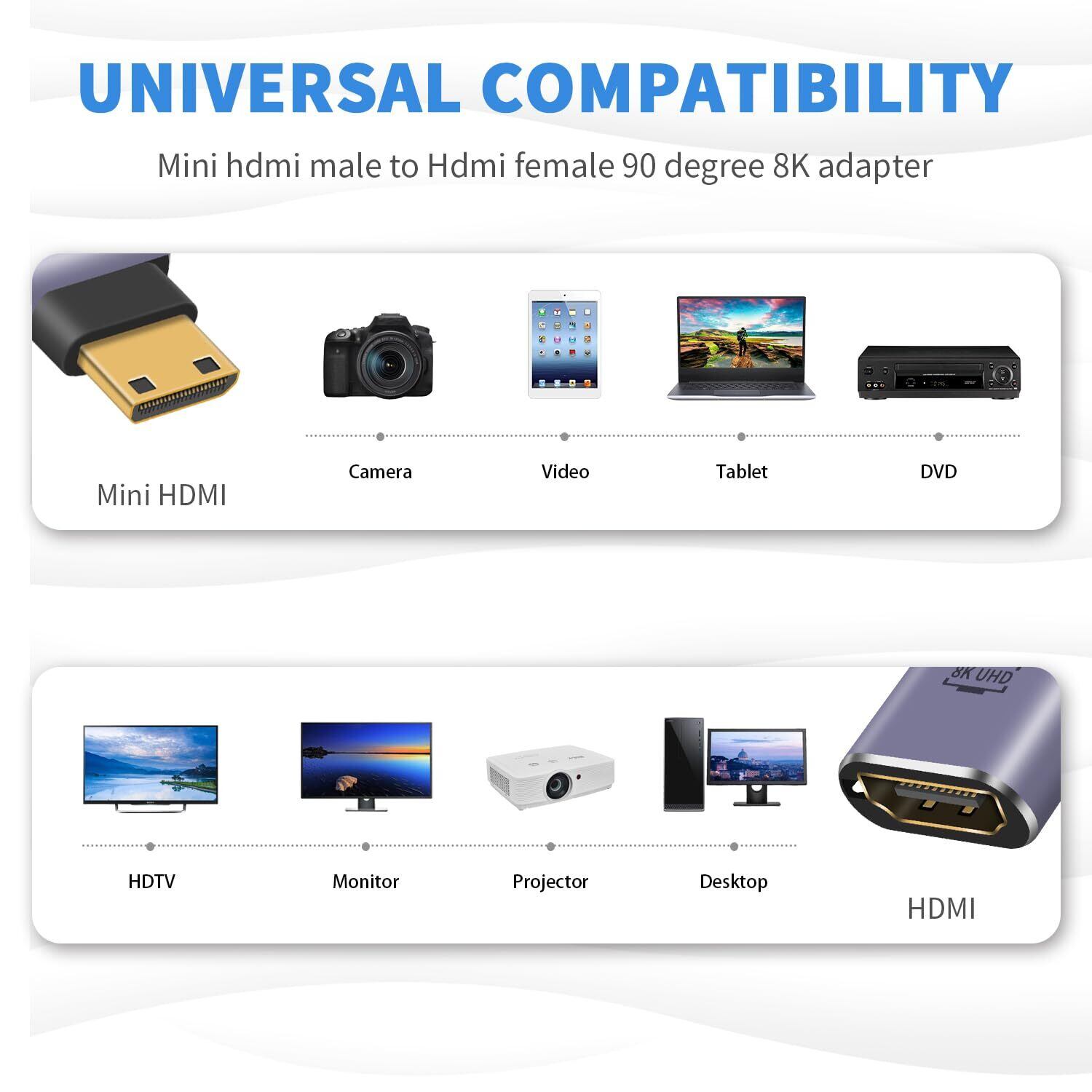 これはL型 mini HDMIオス to HDMIメスアダプタです、それがmini HDMI to HDMI端口である場合、あなたのデバイスを確認してください。hdmi ミニhdmi 2.1変換アダプタコネクタ,アルミケースと金メッキコネクタで安定した信号伝送を確保。