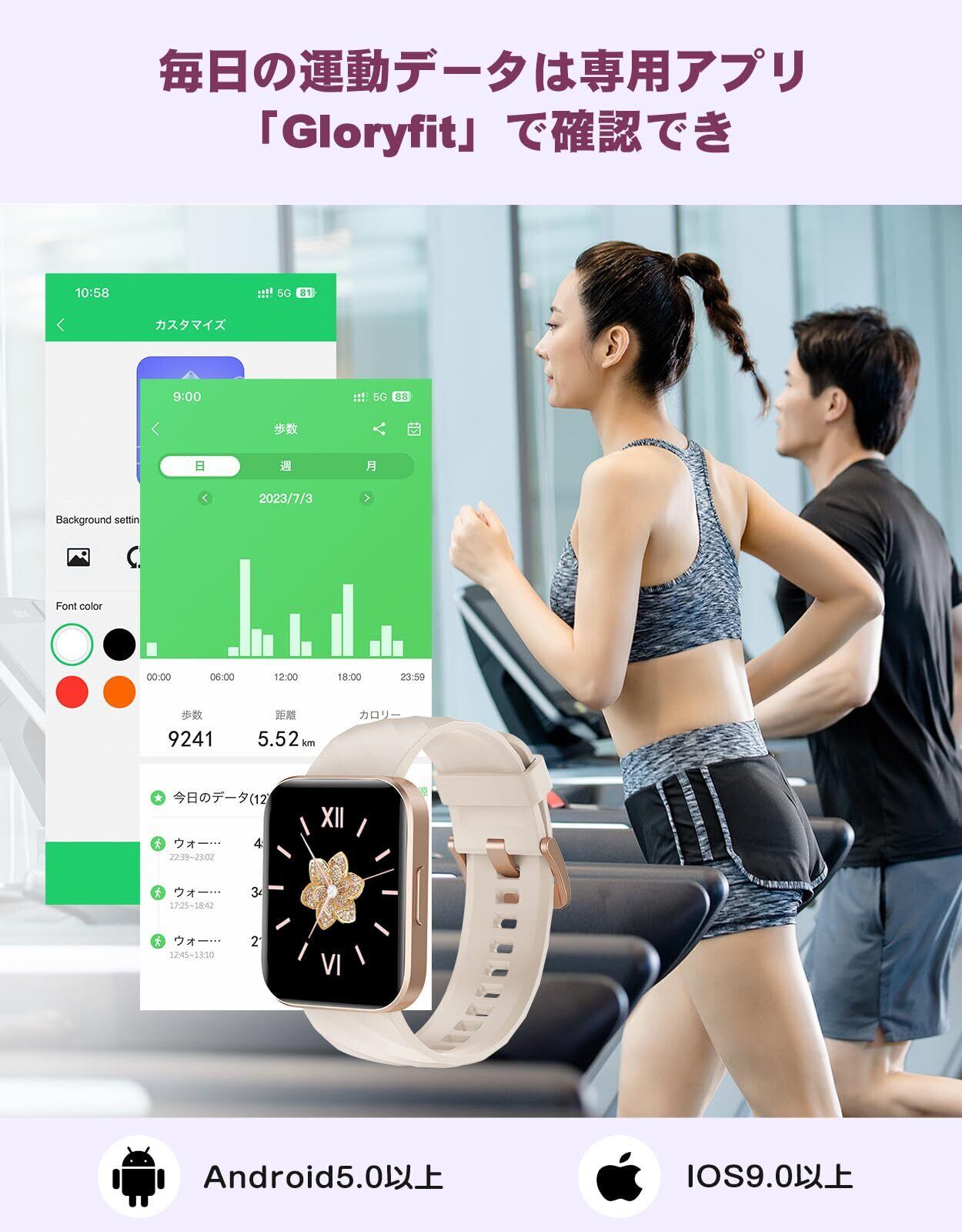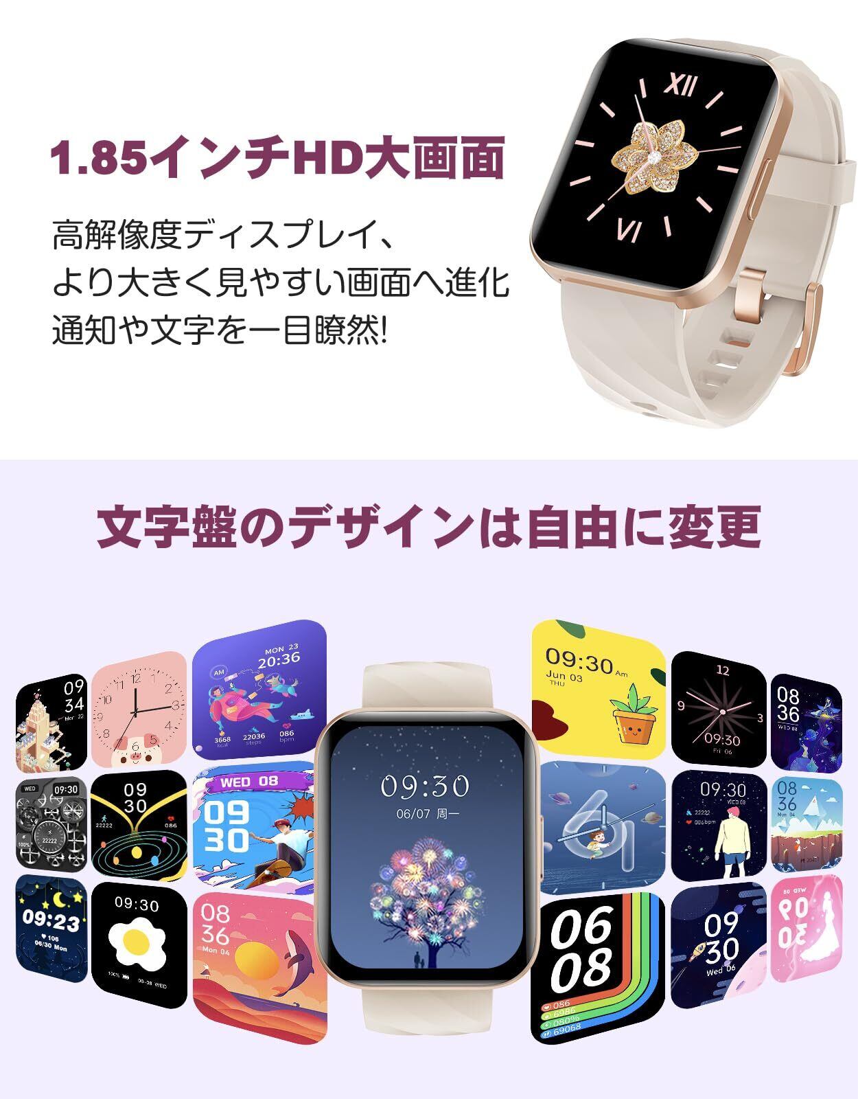【HD大画面・カスタム文字盤】スマートウォッチは高精細なタッチスクリーンでデザインされ、LINEメッセージやスポーツデータなどを確認する際に、より便利で快適な体験をもたらす。また、カスタム文字盤にも対応しており、ペットや家族など、お気に入りの写真を文字盤としてアップロードすることができます!バンドは取り外しと交換が可能で、さまざまな色のスタイリッシュなベルドから選ぶことができる!