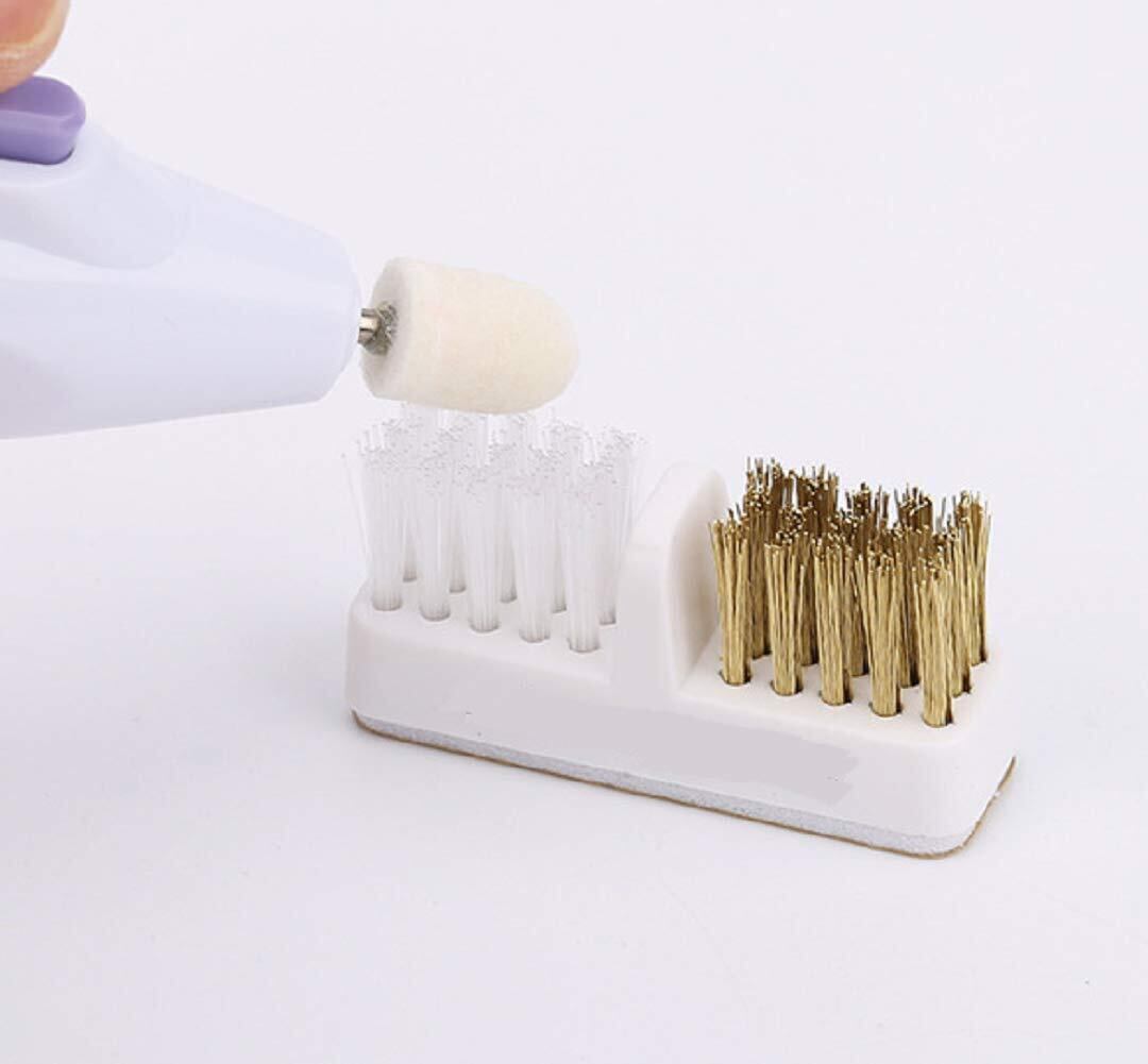 コンパクトサイズで持ち運びにも便利です。ソフトブラシ(ナイロン)とハードブラシ(メタル)の2種類のブラシがあり用途により使い分けができます。 使い方:ソフトブラシ(ナイロン)とハードブラシ(メタル)に低速でビットをあてるだけの簡単クイックお掃除!! ※真鍮よりも硬いセラミック等に使用すると摩耗する場合があります。