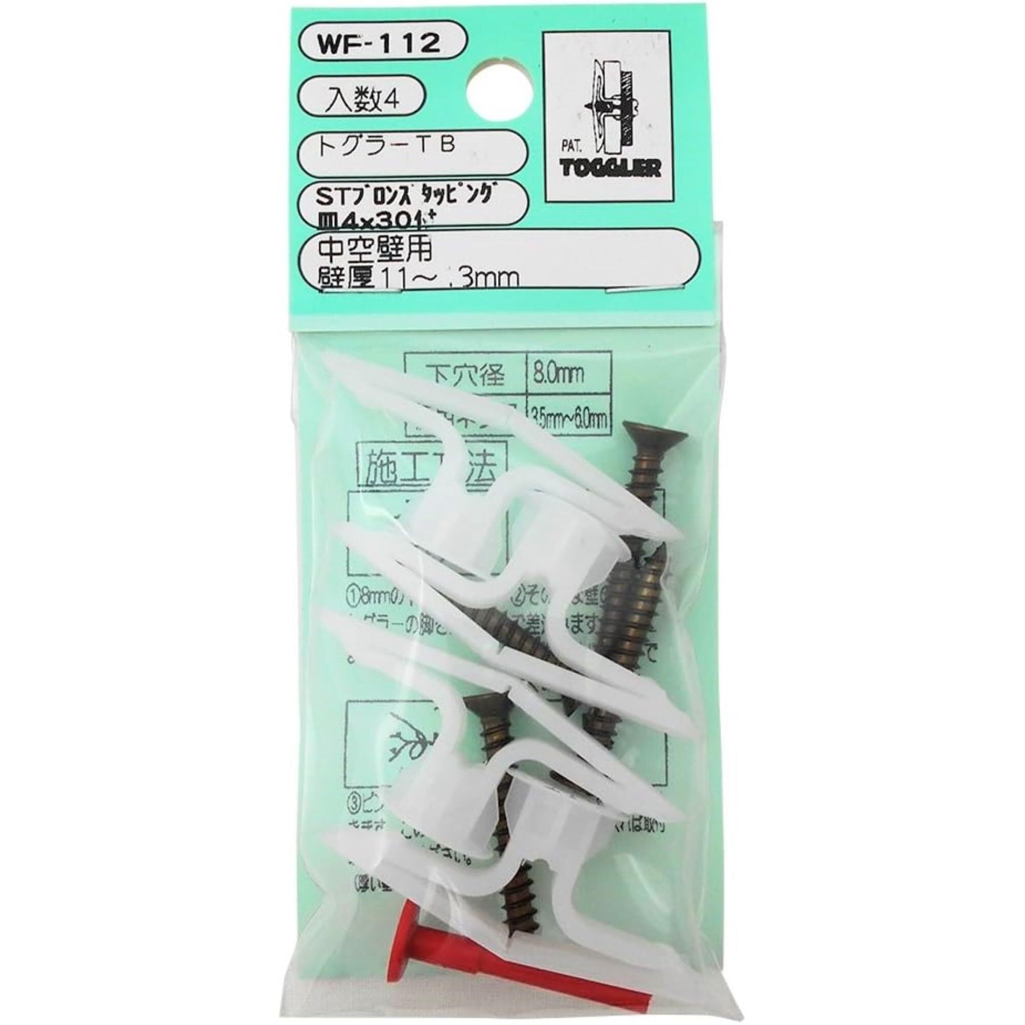 和気産業(Waki Sangyo) トグラー タッピング皿付き TB 中空壁用 石膏ボード 4個入 白 壁厚11~13mm WF-112