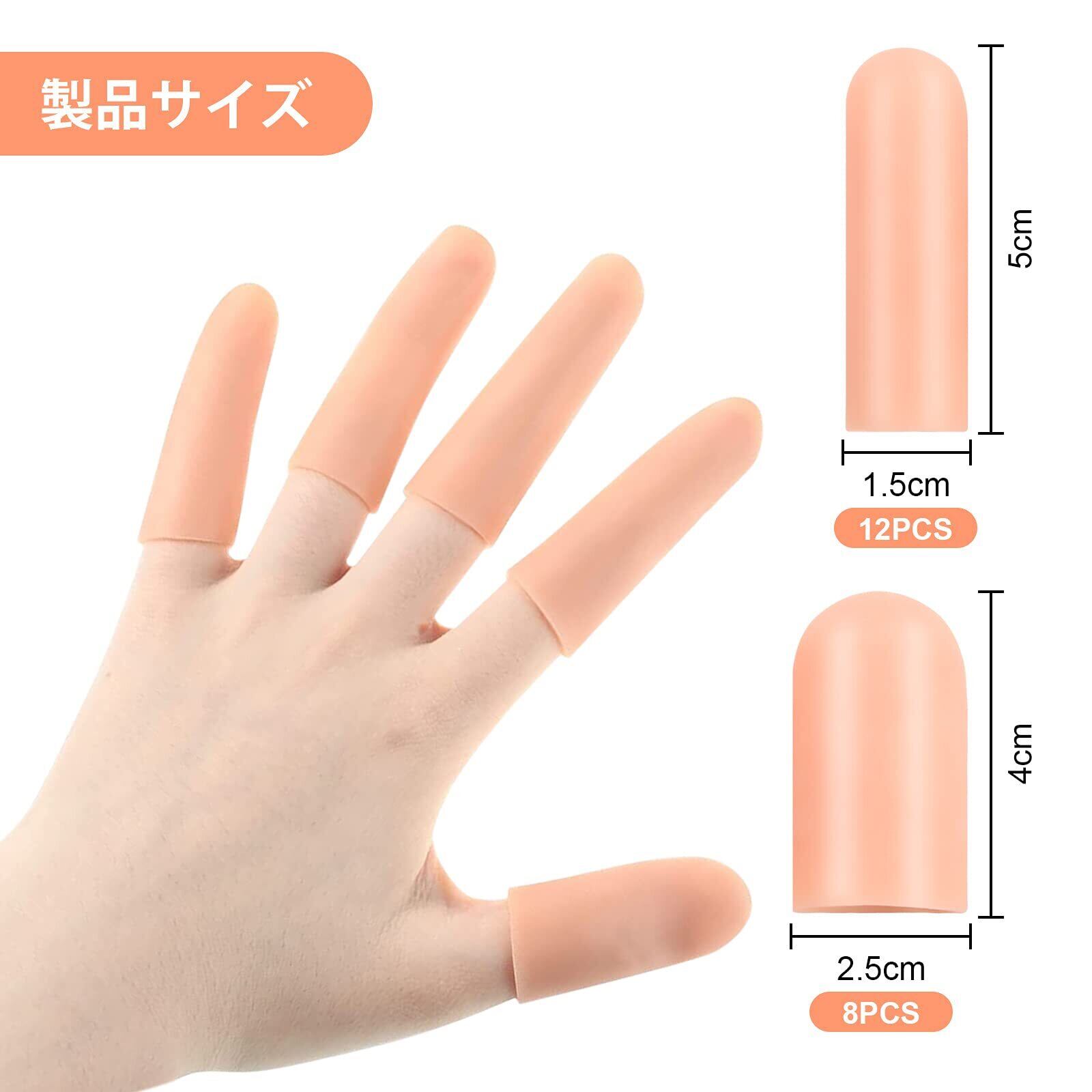 【パッケージ内容とサイズ】8個親指用のショートジェル指サック+12個他の指用のロングジェル指キャップ、指先保護キャップは伸縮性と耐久性のある素材であるため、男女兼用で、サックを洗って乾燥させ、繰り返し利用可能です。
