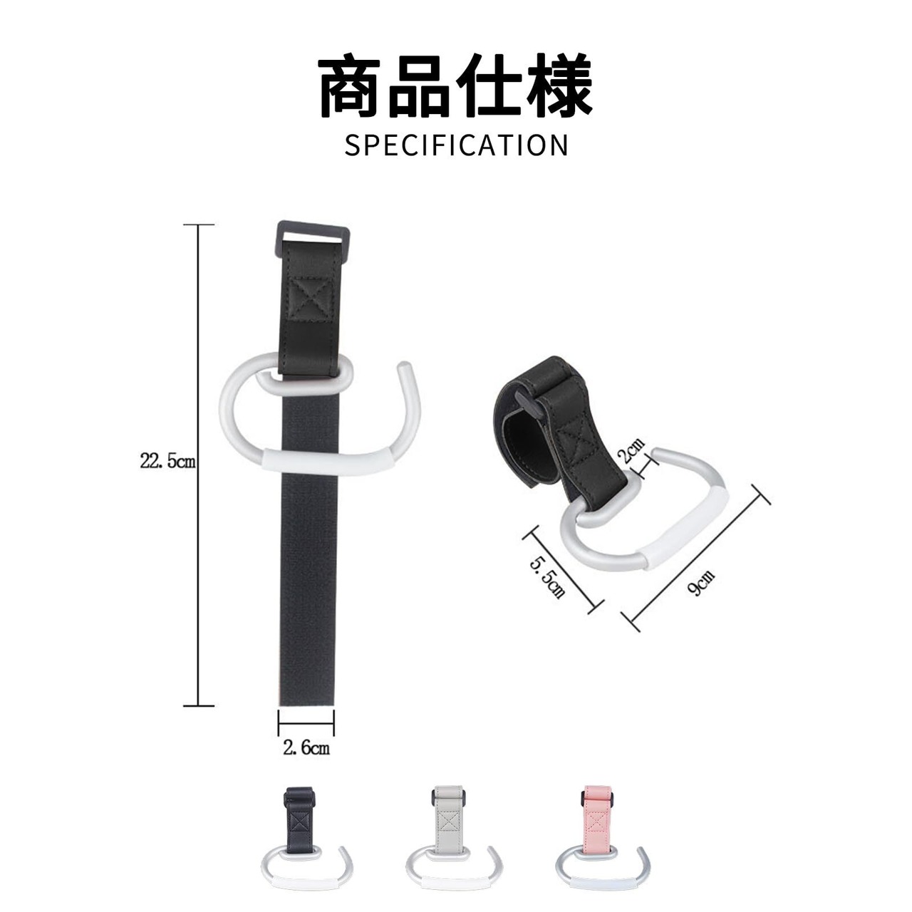 【セット内容】フック2個セットです。サイズ:ベビーカーフック、重量40g。サイズは長さ:13cm、幅:9cm。カラー:ブラック/グレー/ピンク。