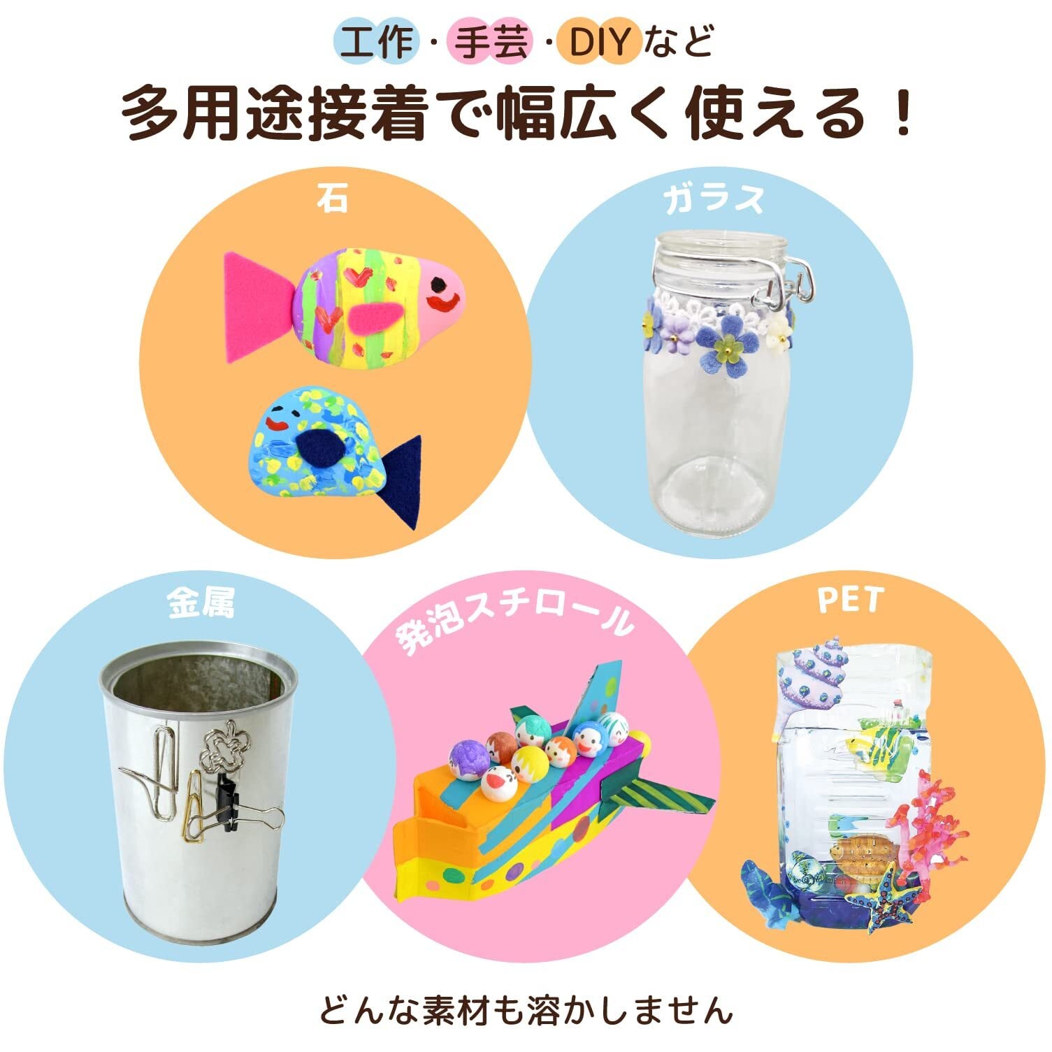 【特長1】図工の授業やご家庭での工作・DIYに。紙、木、石、金属、フェルト、色んな素材を強力接着。