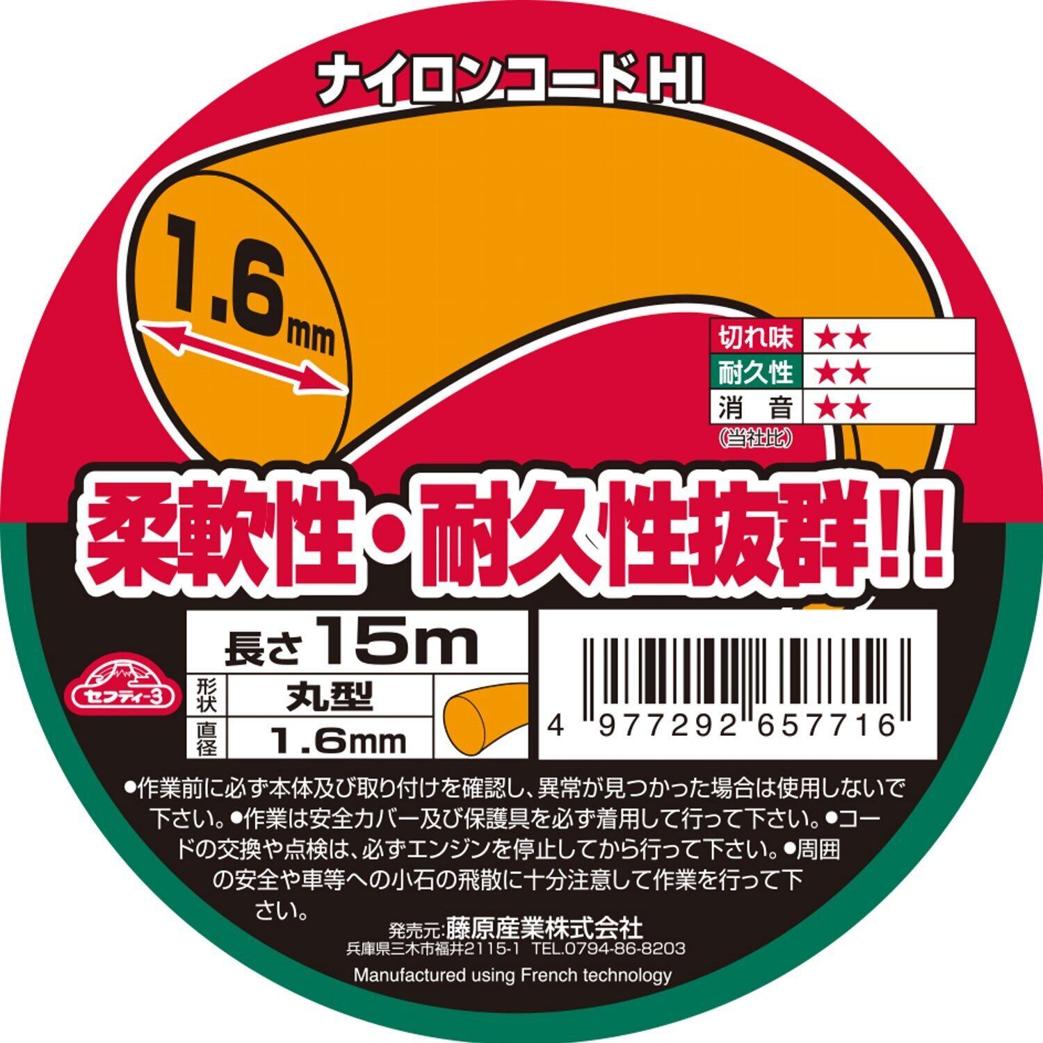 セフティー3(Safety-3) 草刈・刈払機用 柔軟性・耐久性抜群 ナイロンコードHI 15m 丸型 1.6mm径